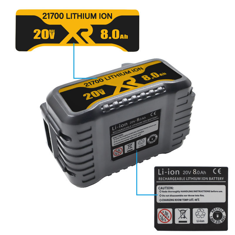 DCB200 21700 10 CORE 8.0AH Литийная батарея аккумуляторная батарея, подходящие для DeWalt Gewei 18V 20V лития батареи DCB200 DCB203.