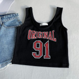 Трикотажная короткая приталенная майка топ без рукавов, для маленькой груди