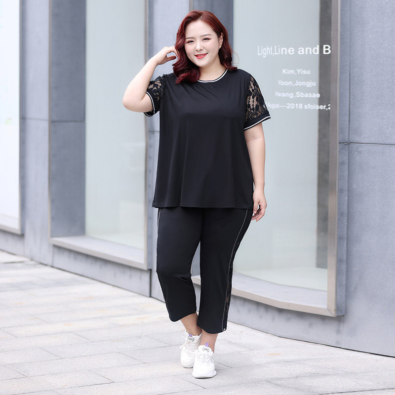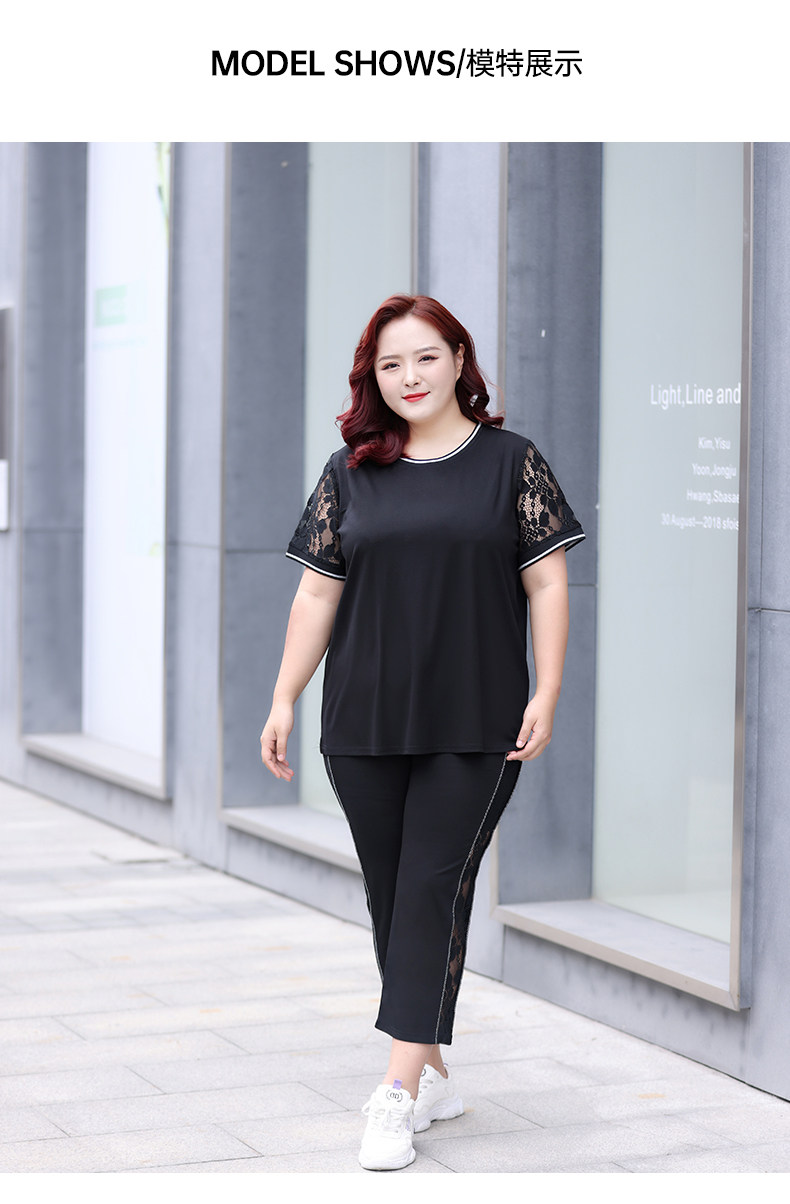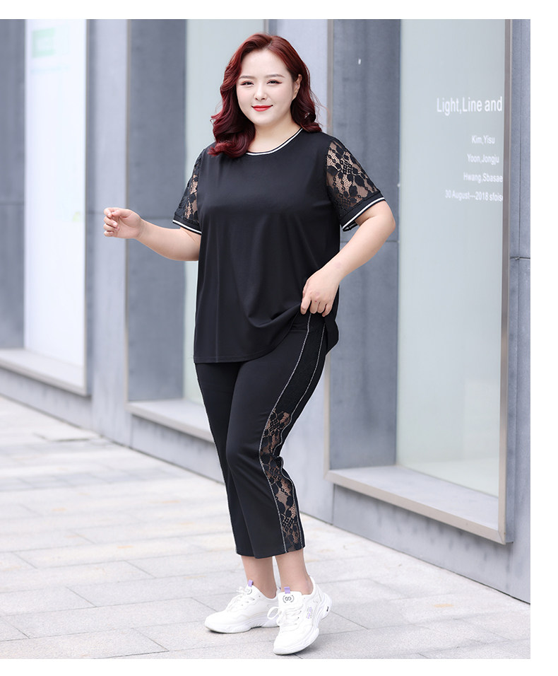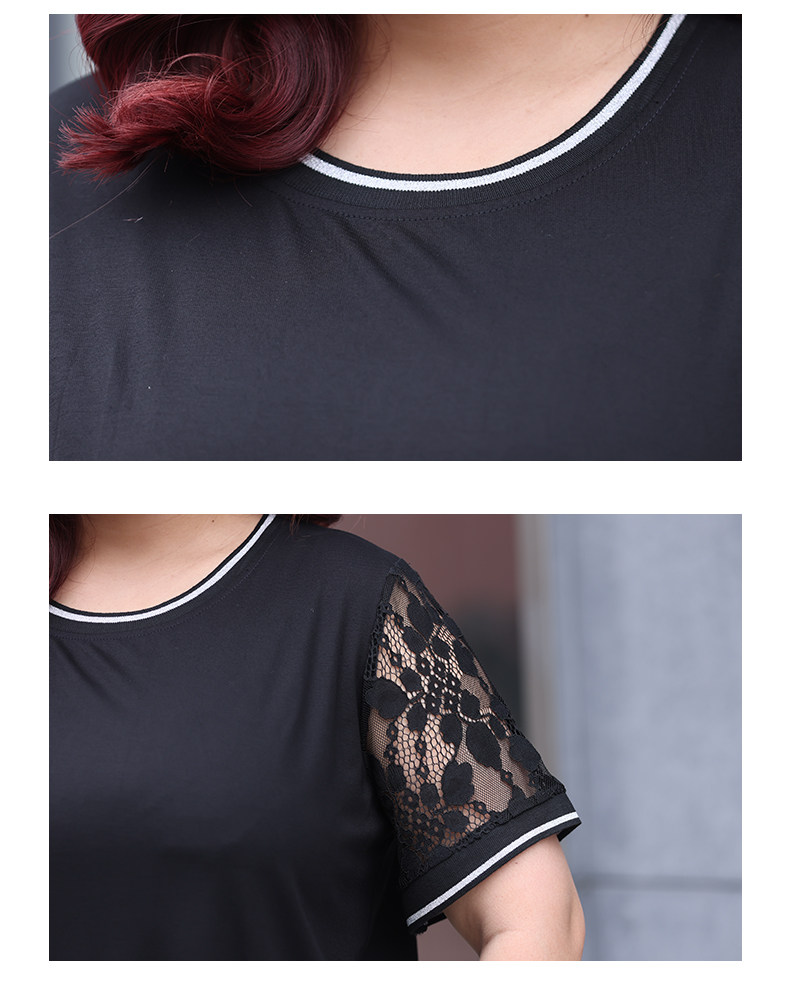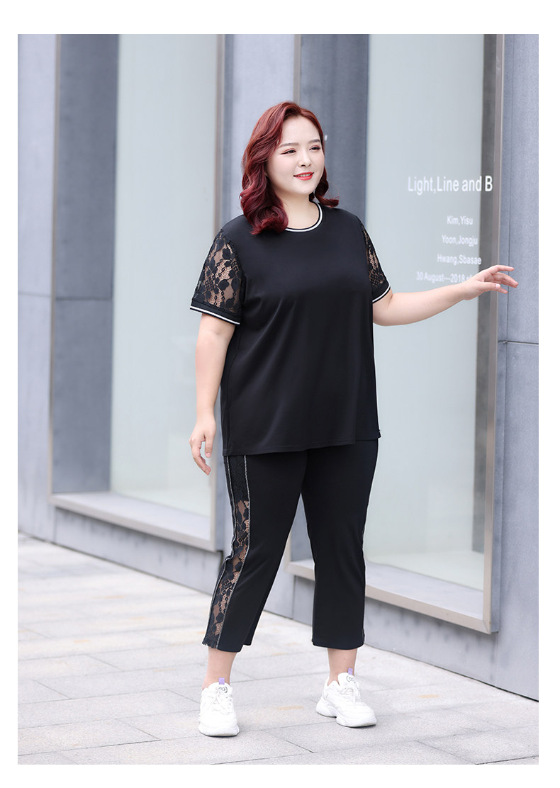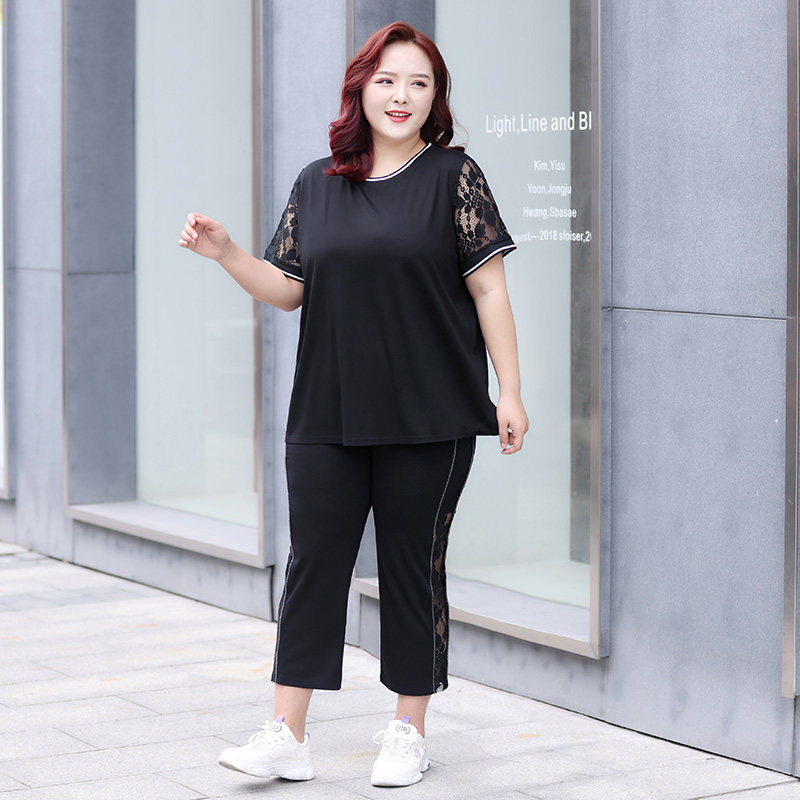 Черный кружевной комплект с круглым воротником, летняя одежда, большой размер