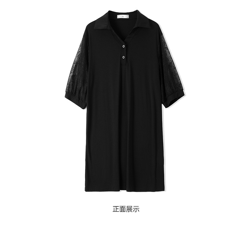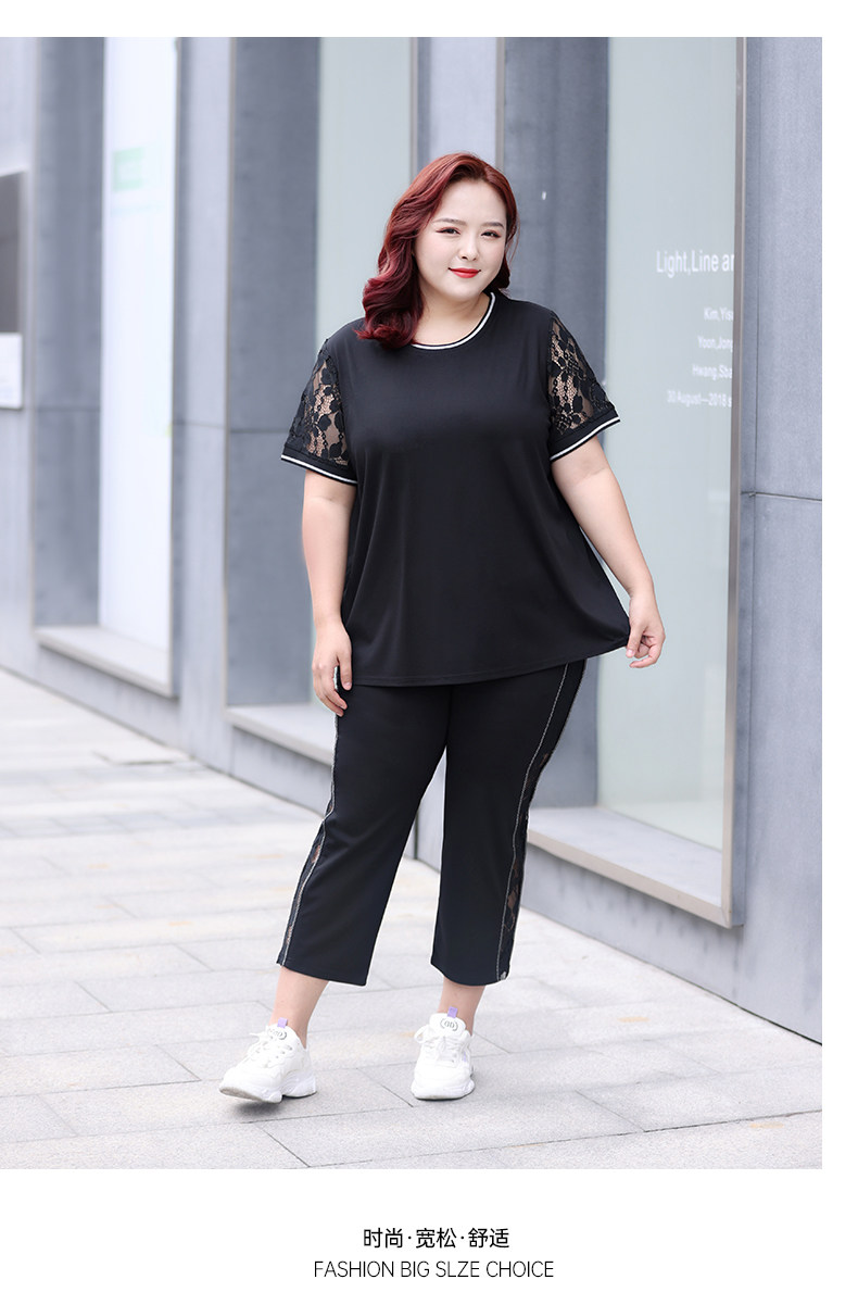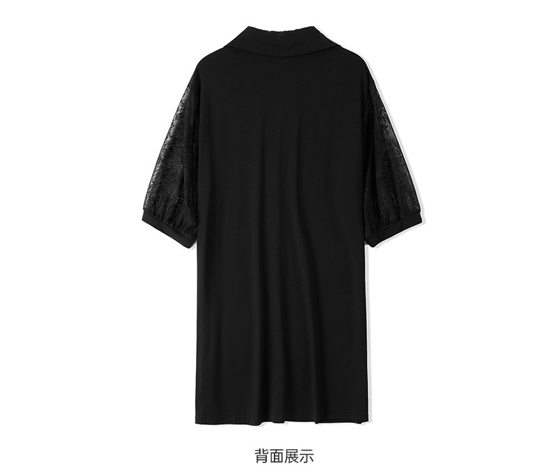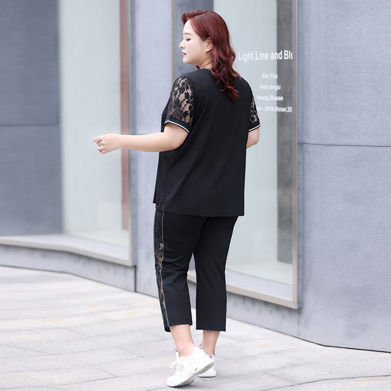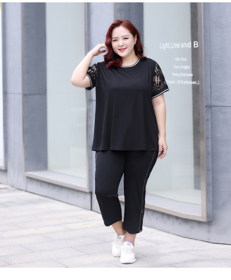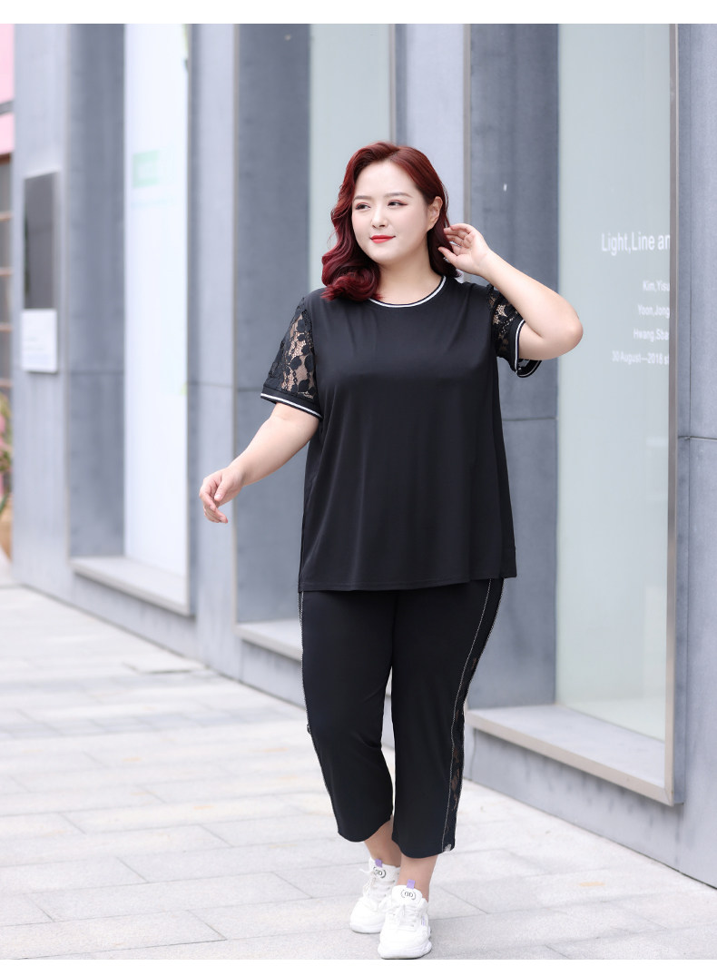 Черный кружевной комплект с круглым воротником, летняя одежда, большой размер