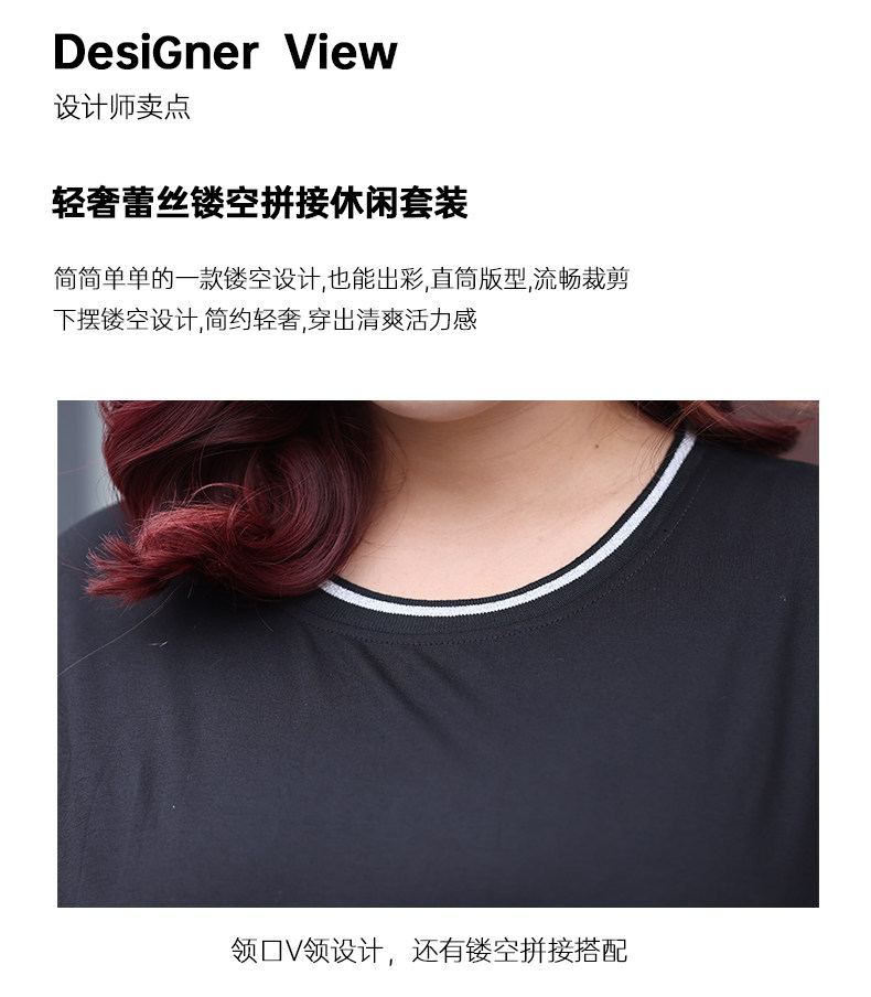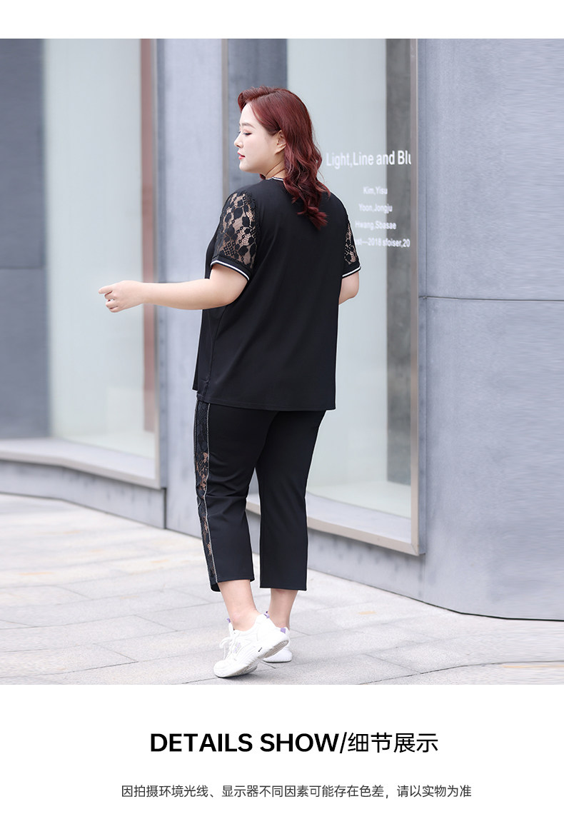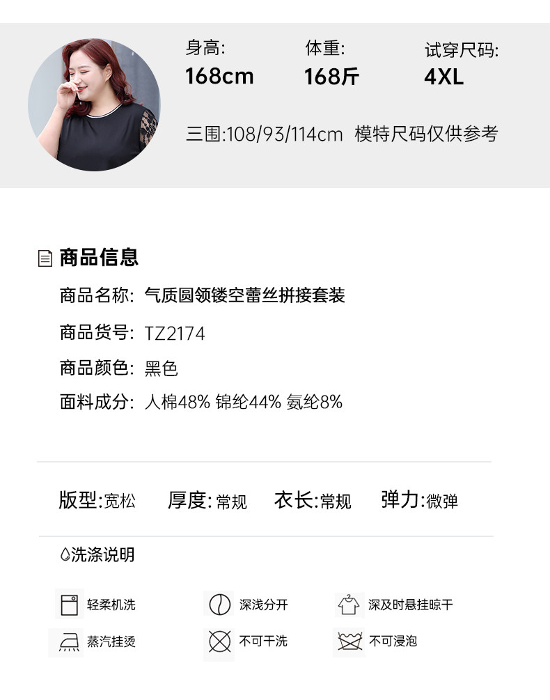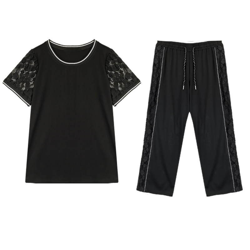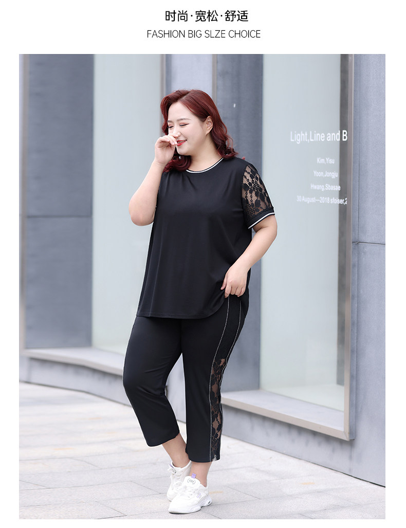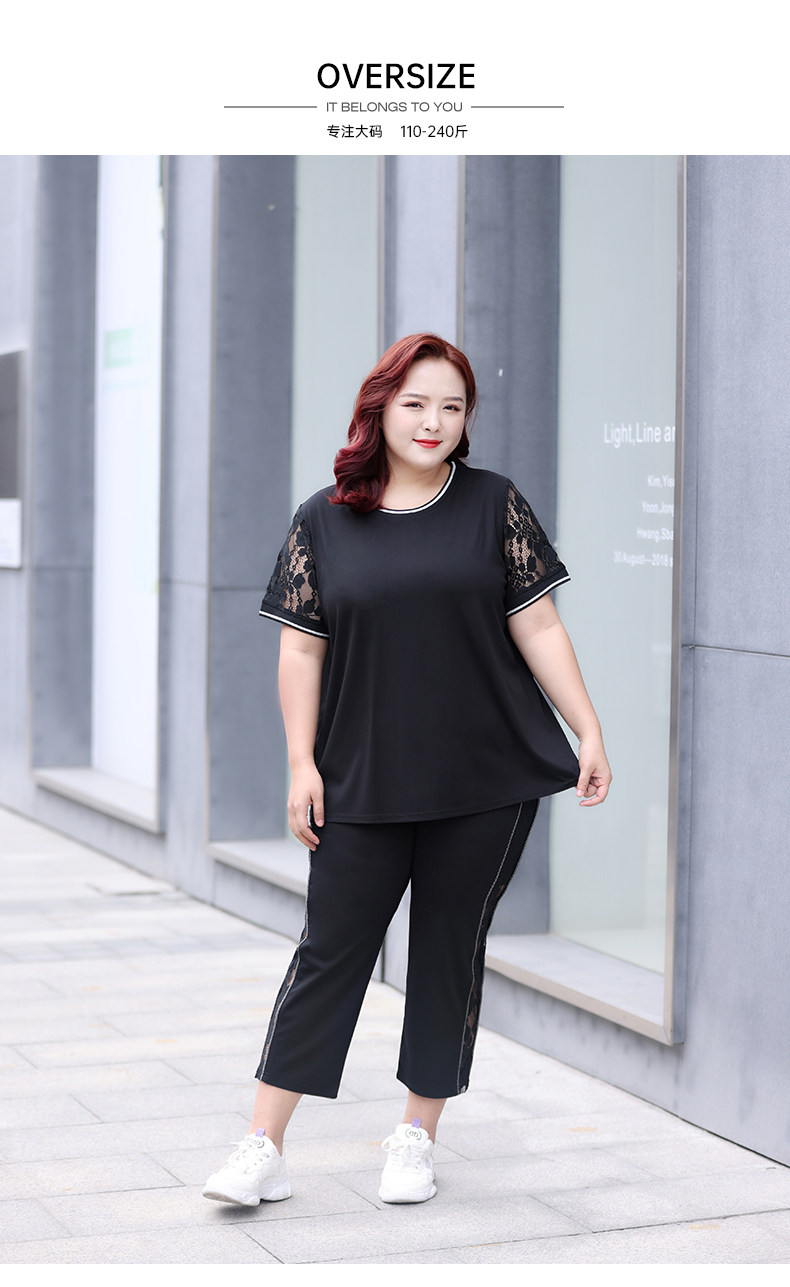 Черный кружевной комплект с круглым воротником, летняя одежда, большой размер