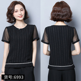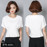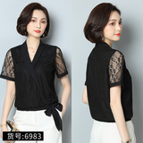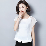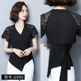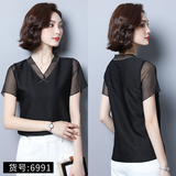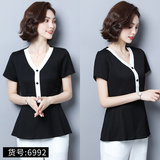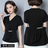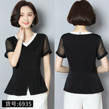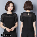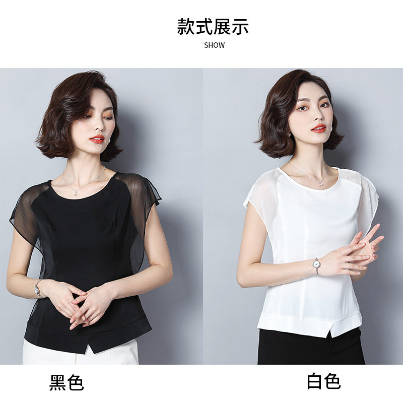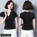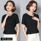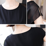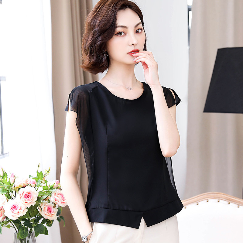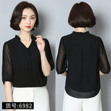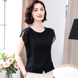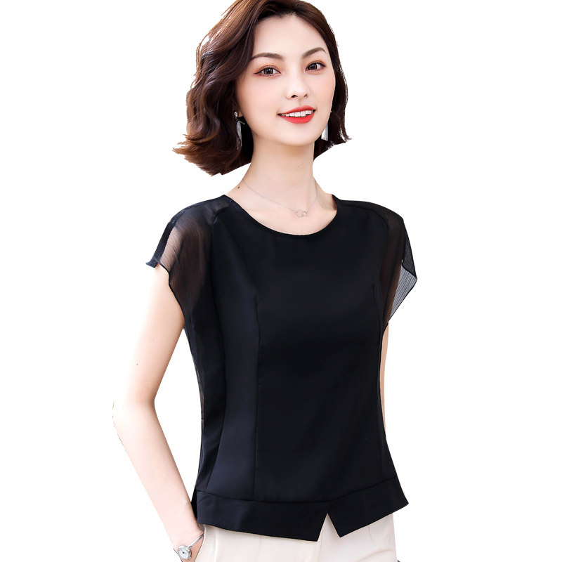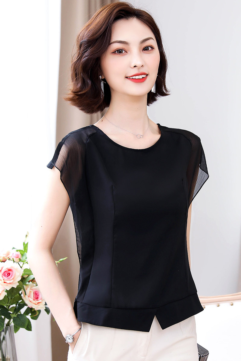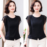 Шифоновая летняя черная рубашка, короткий рукав, оверсайз, свободный крой, французский стиль