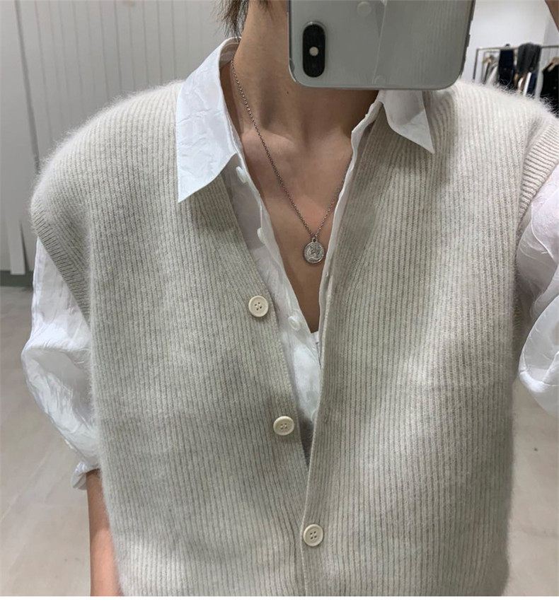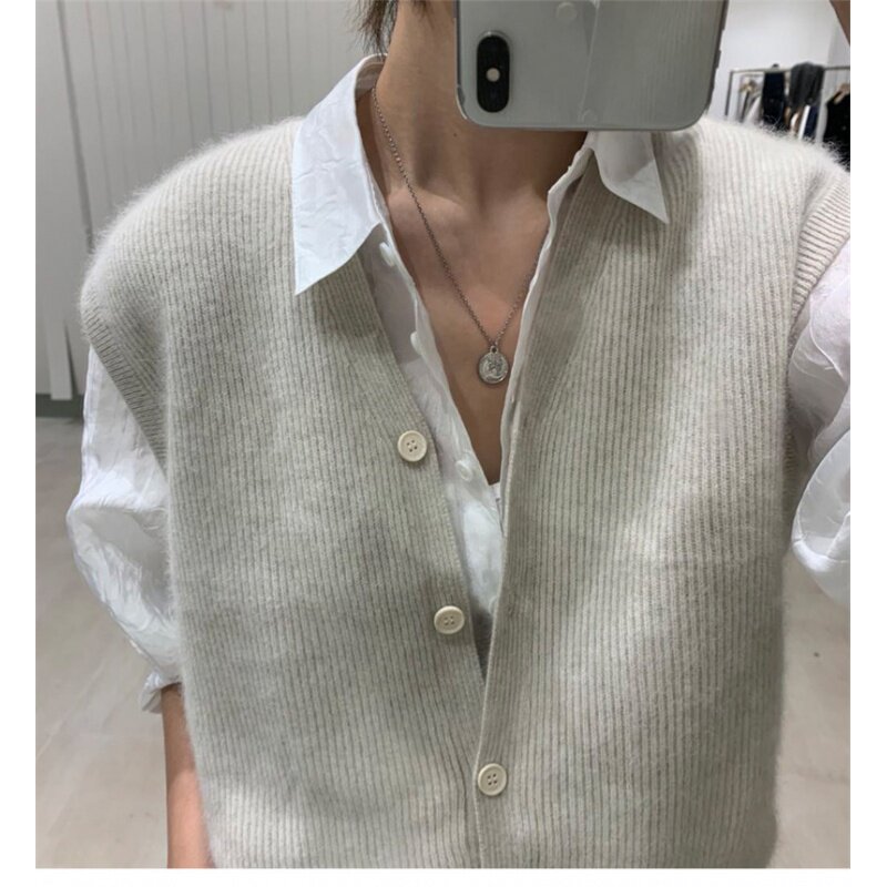Кашемировый жилет, кардиган, рубашка, шерстяная трикотажная майка топ, в корейском стиле, V-образный вырез