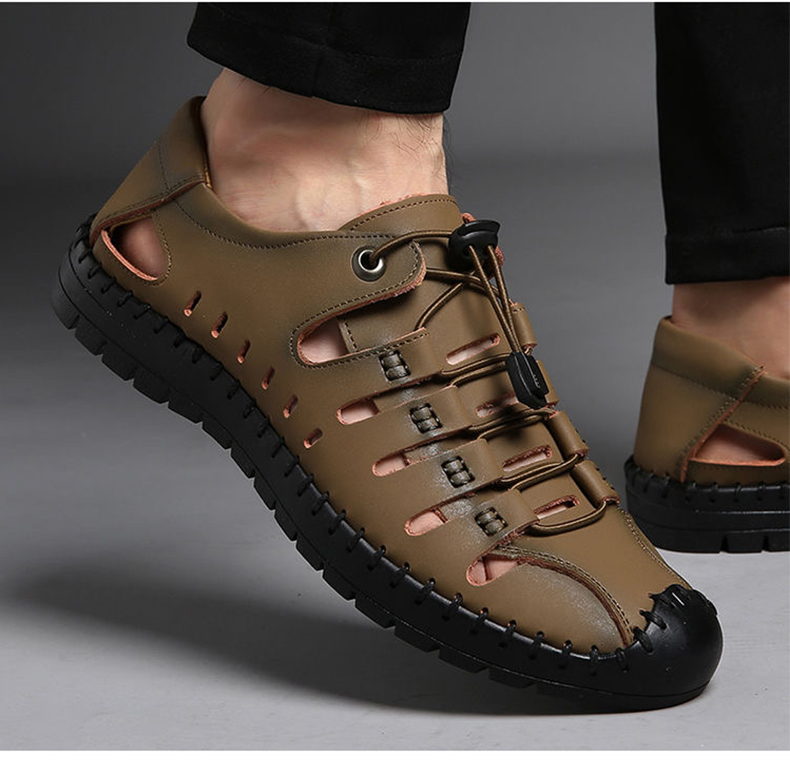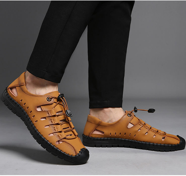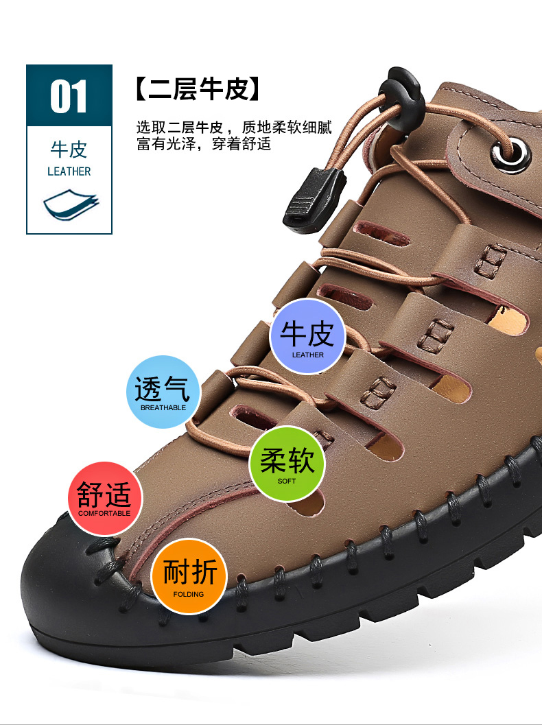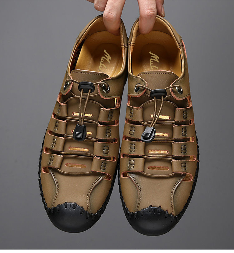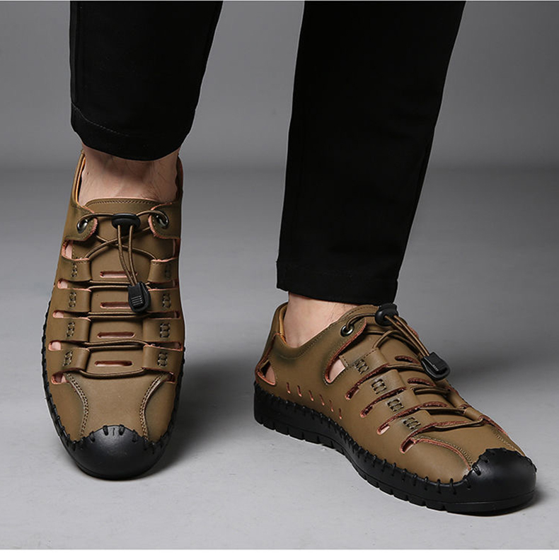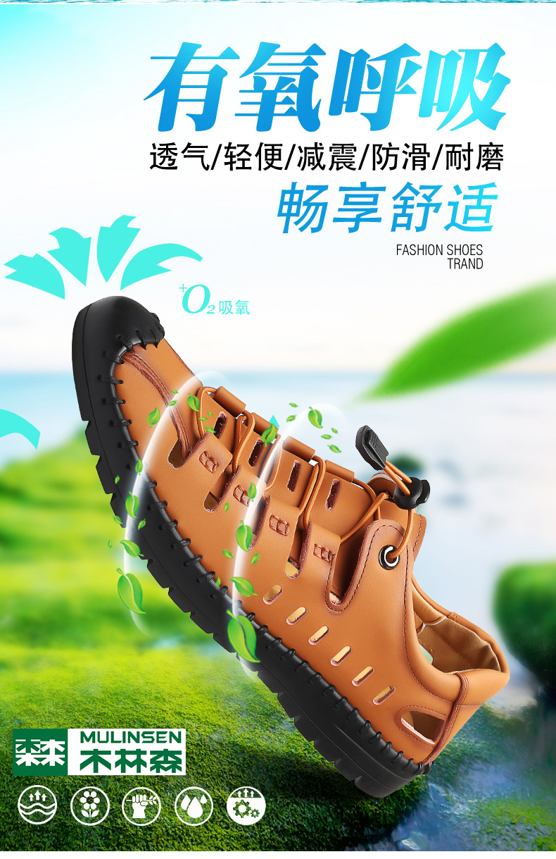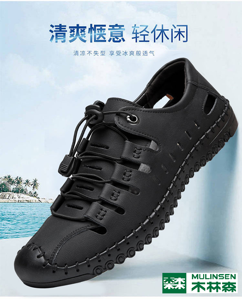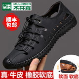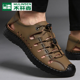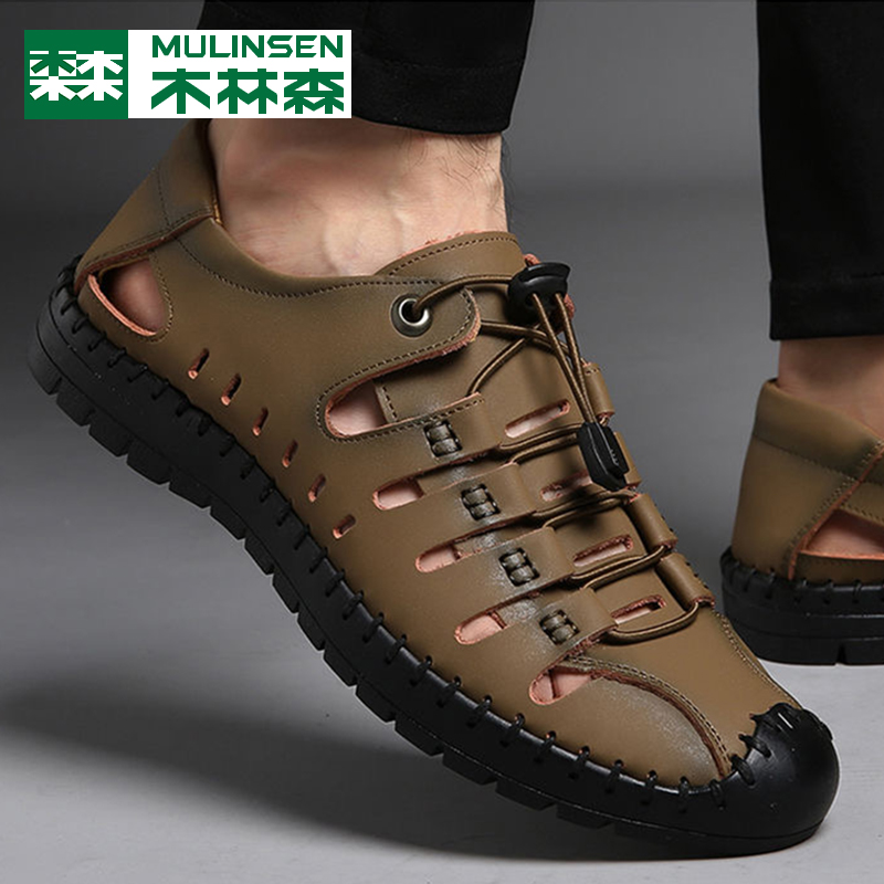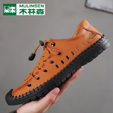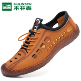 木林森 Летняя обувь, дышащие туфли для кожаной обуви для отдыха, сандалии, из натуральной кожи