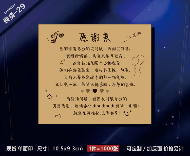 Вынос маленькая нота ретро-карфмовая бумага благодарственное письмо на заказ на индивидуальность