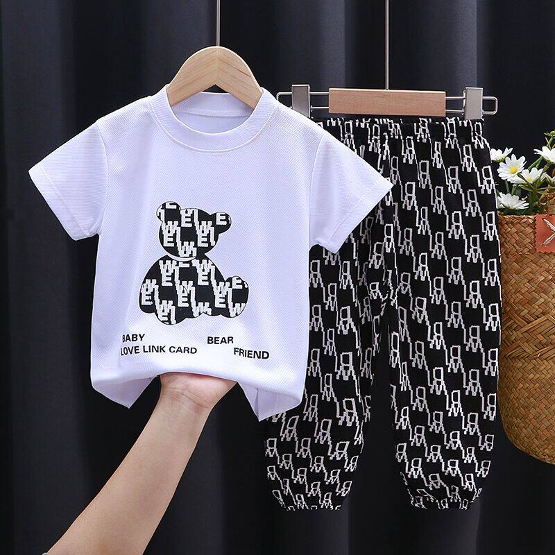 Детские нарукавники, летний комплект для мальчиков, детская одежда, коллекция 2022, подходит для подростков, с медвежатами, короткий рукав