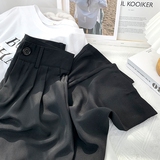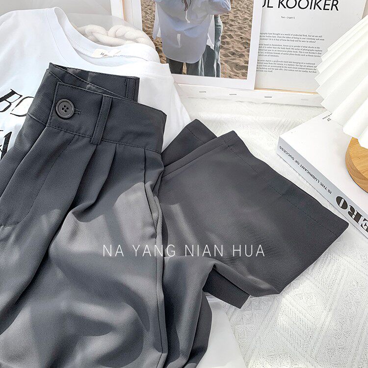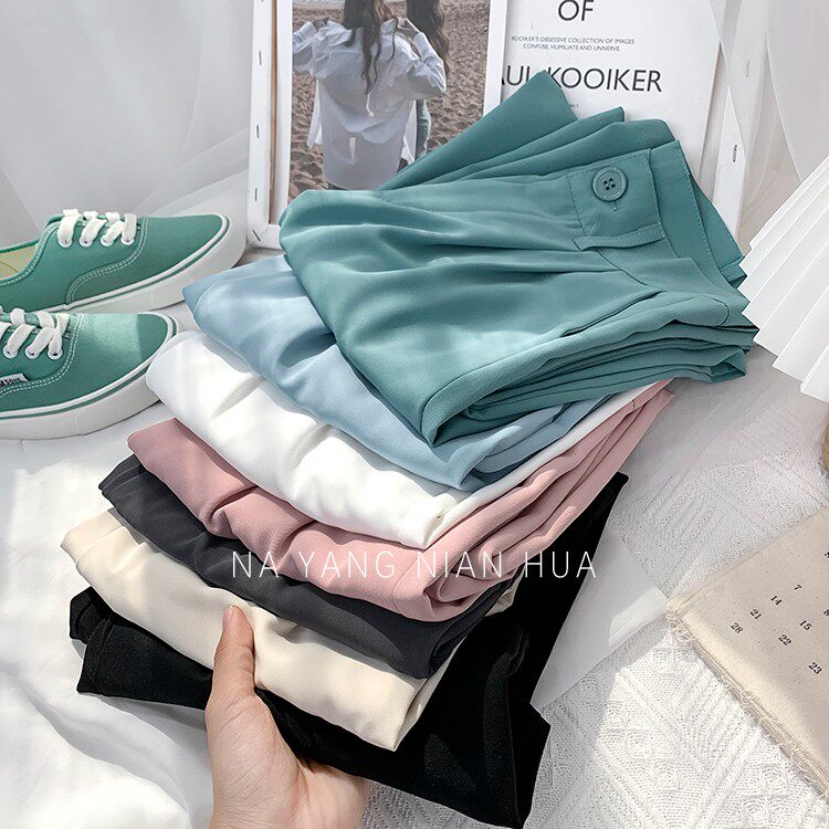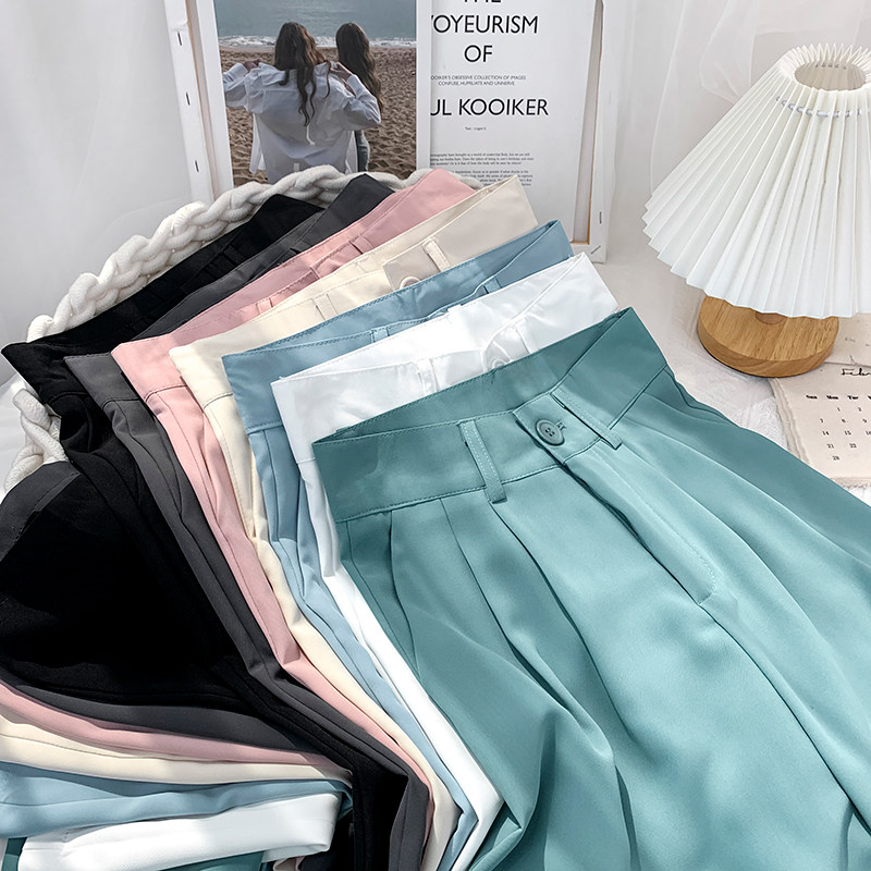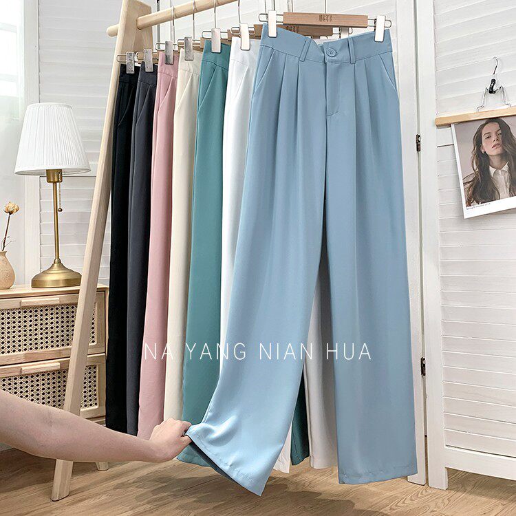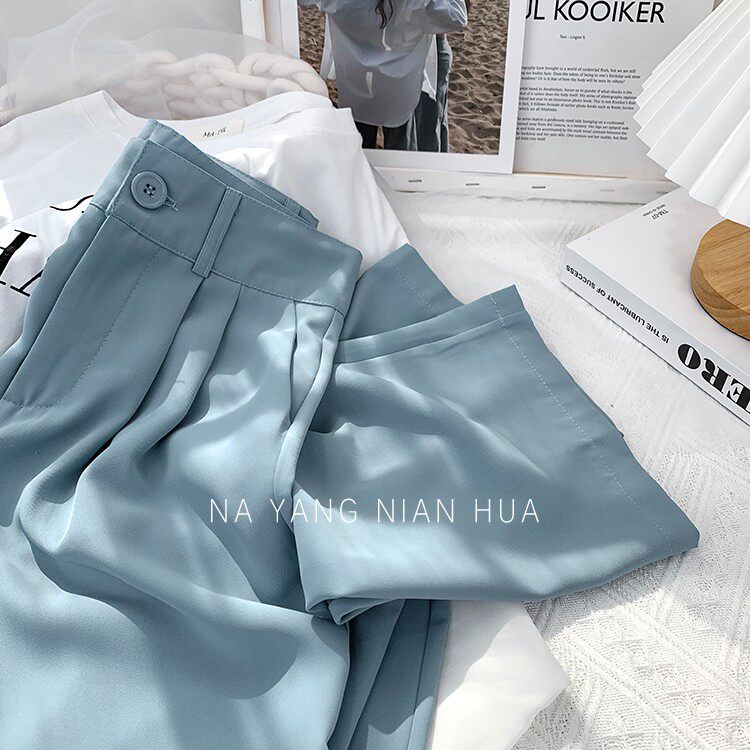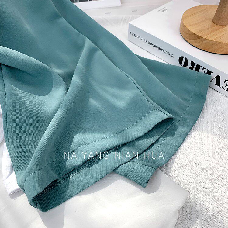 Приталенный шелковый костюм, шифоновые штаны, высокая талия, свободный крой, подходит для подростков
