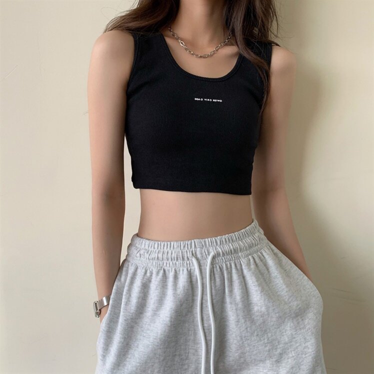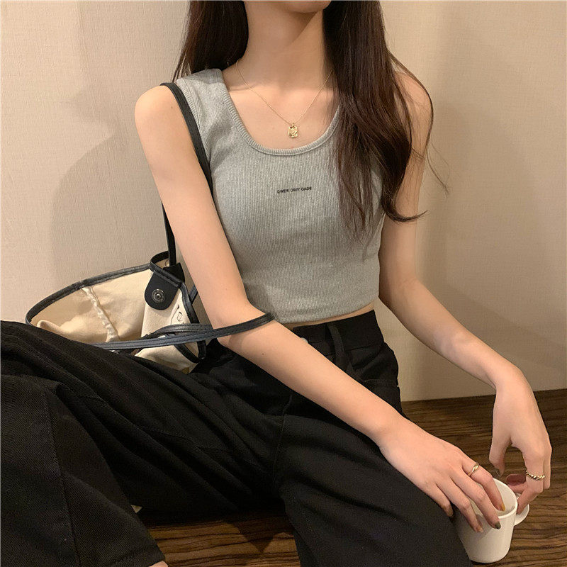 Короткая летняя майка, черный базовый сексуальный жилет без рукавов, красивая спина