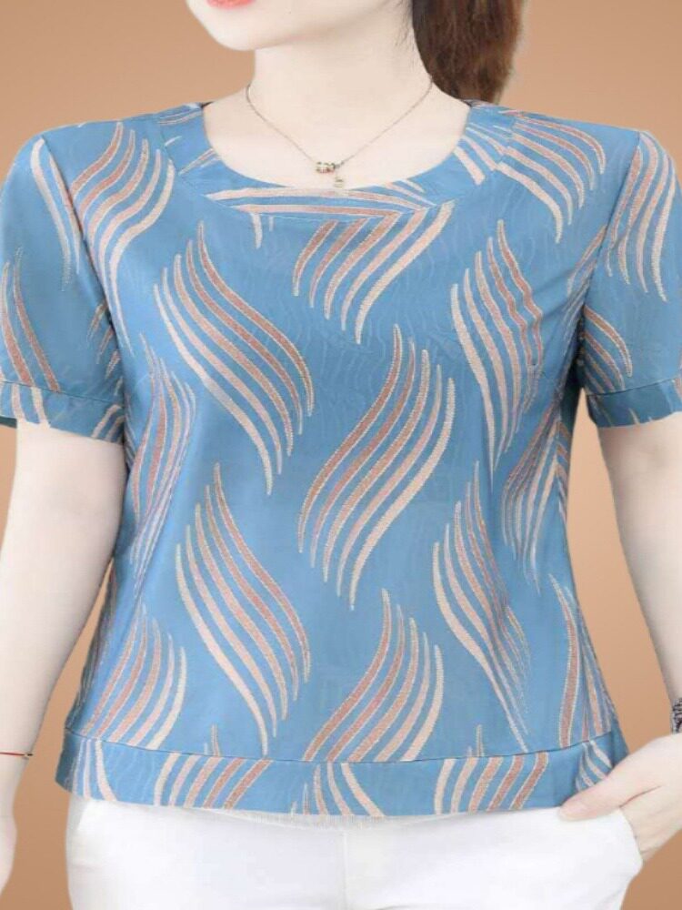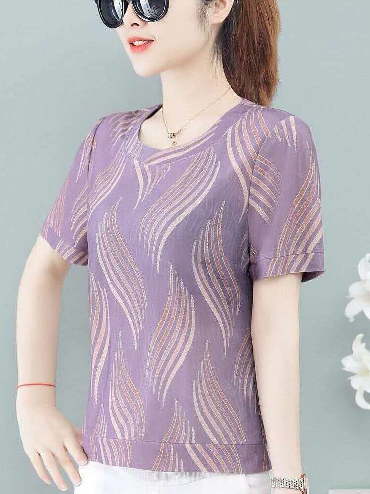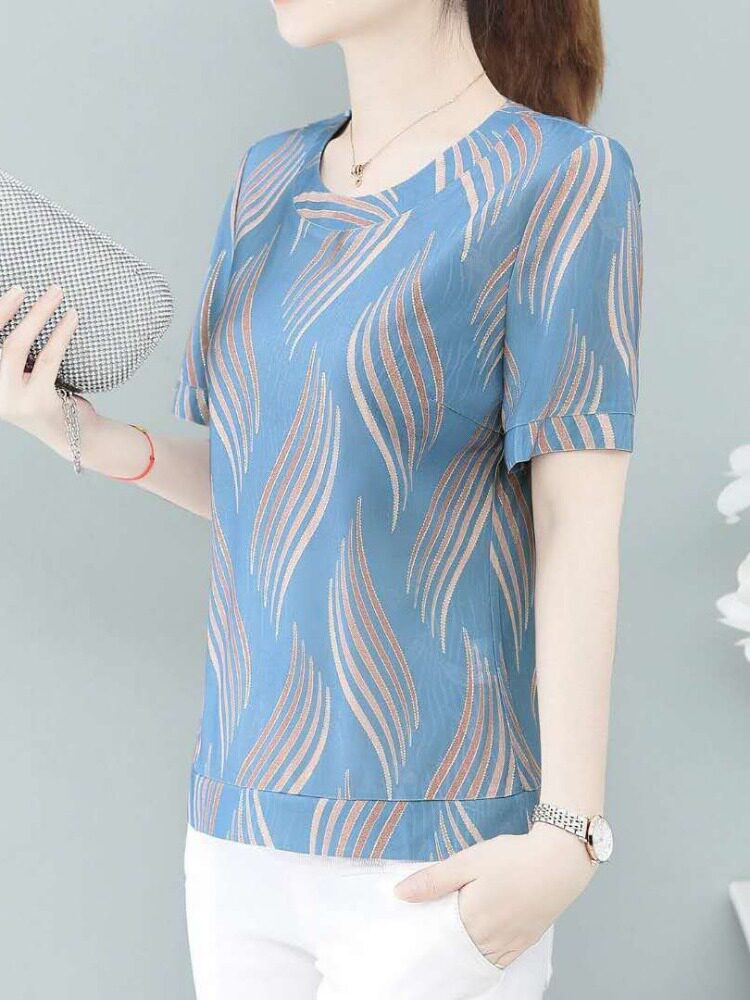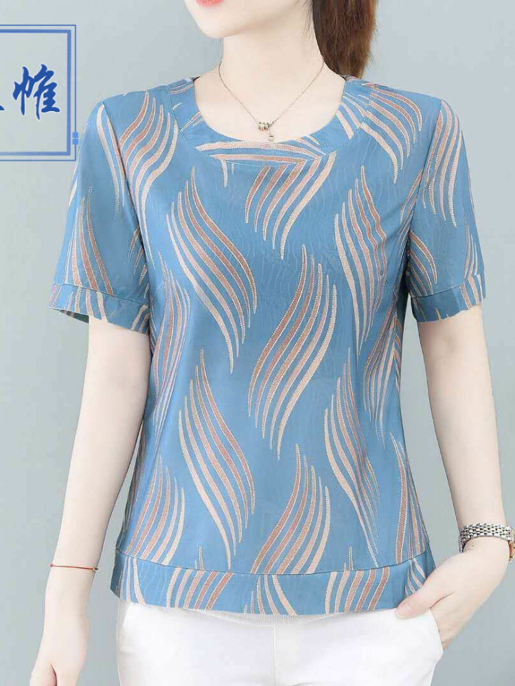 Летняя шелковая футболка для матери, большой размер, в западном стиле, короткий рукав, по фигуре