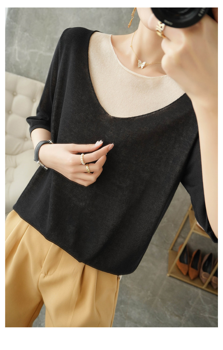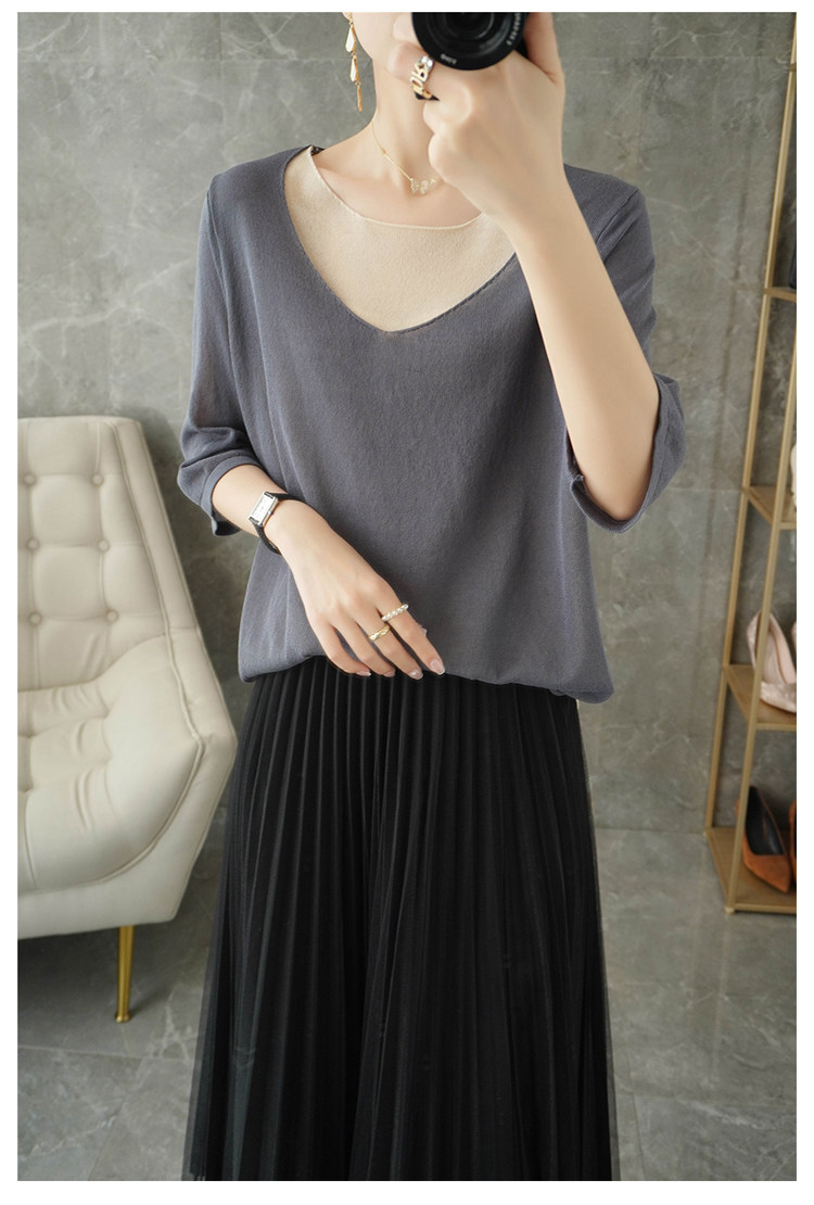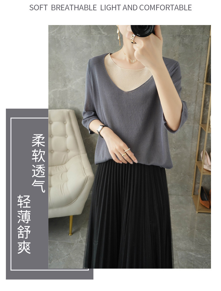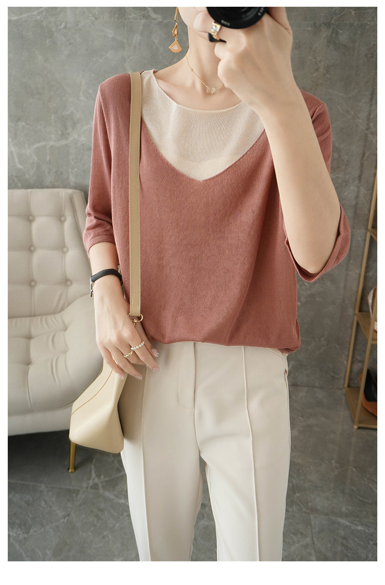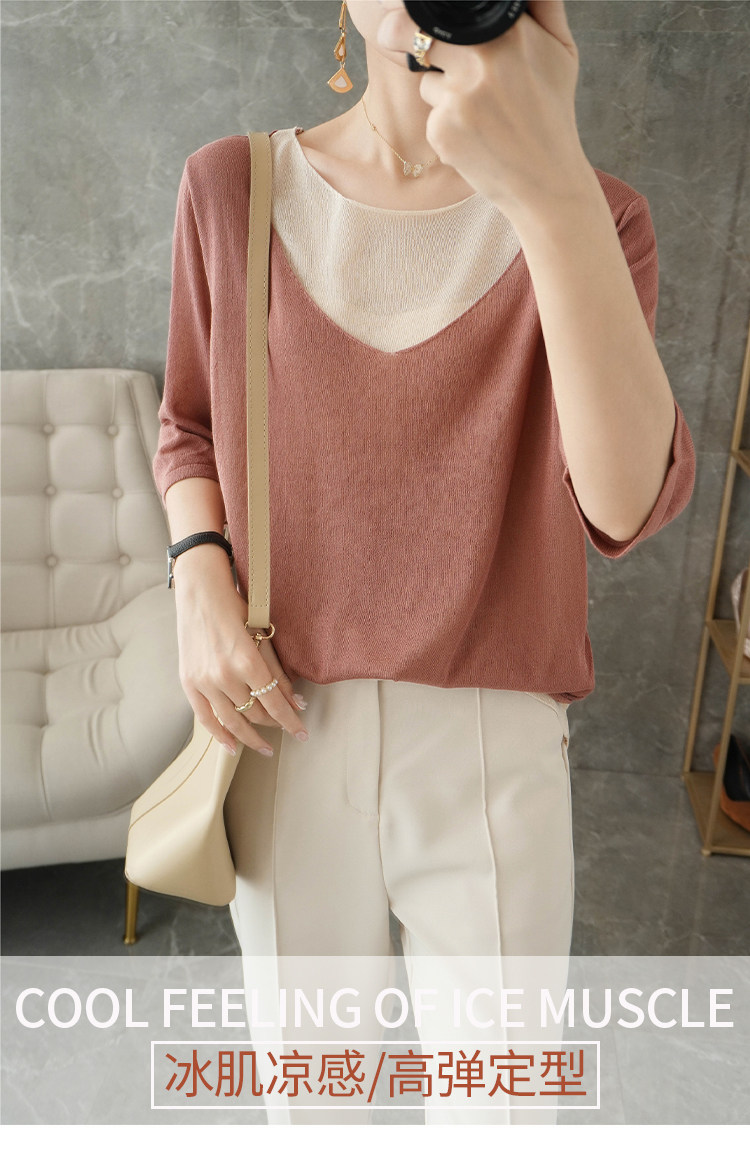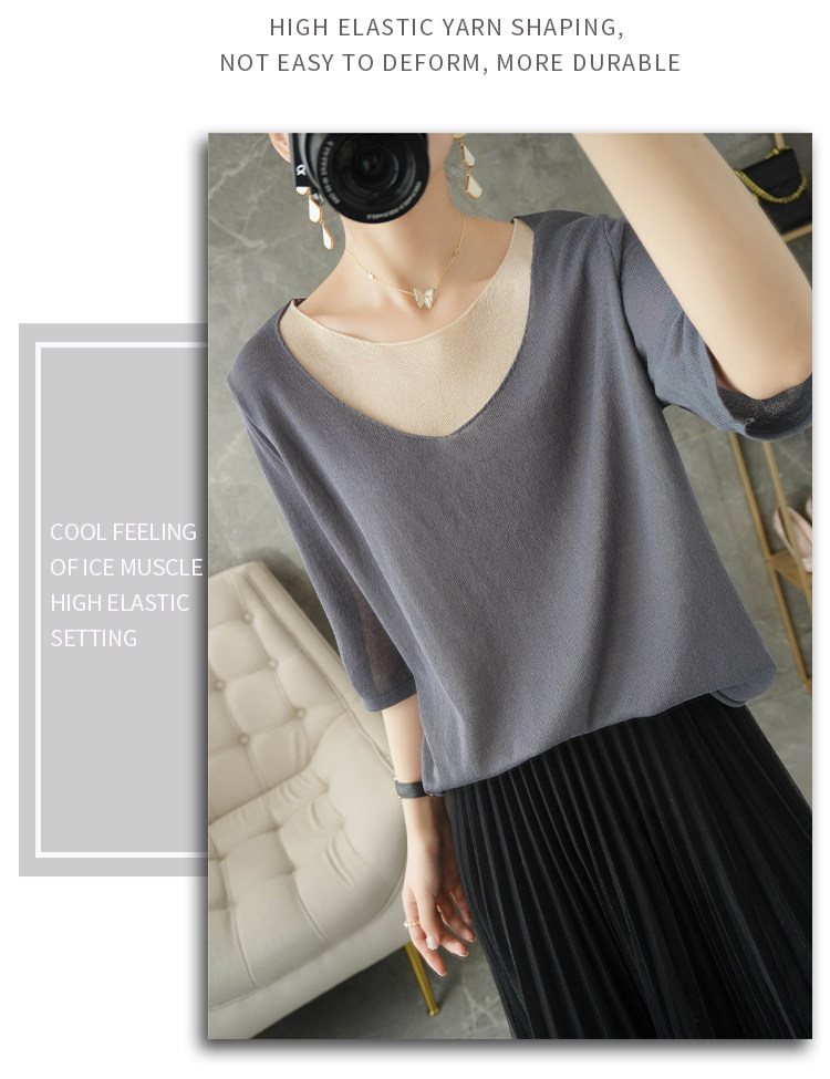 Трикотажный шелковый свитер, универсальный комплект с круглым воротником, футболка, короткий рукав, коллекция 2021, свободный крой