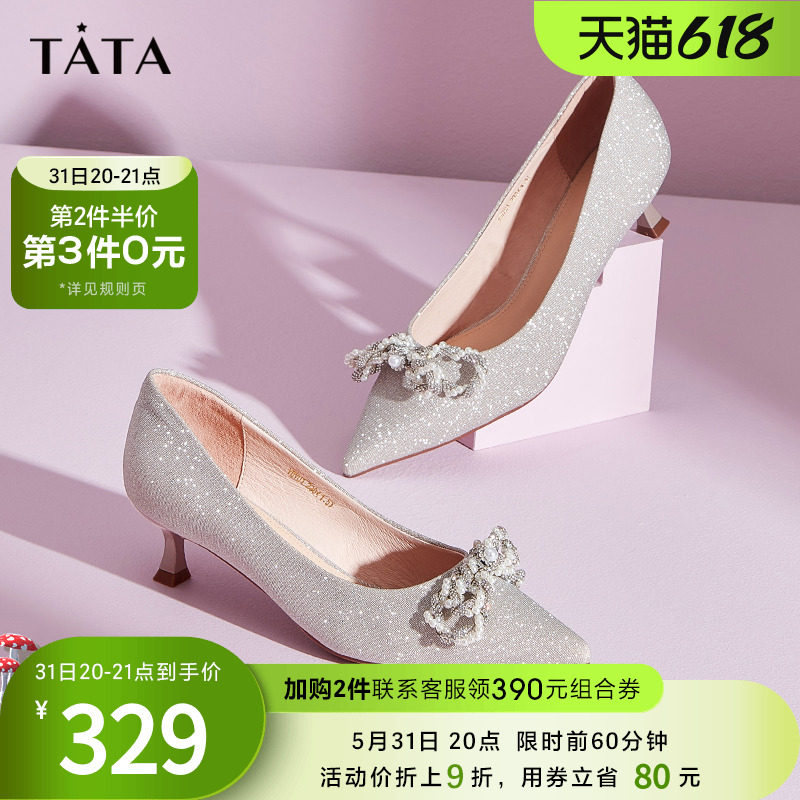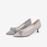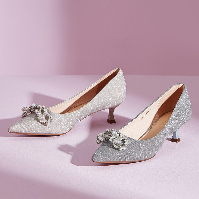 Свадебные туфли, универсальные весенние туфли на высоком каблуке с заостренным носом с бантиком