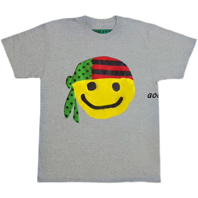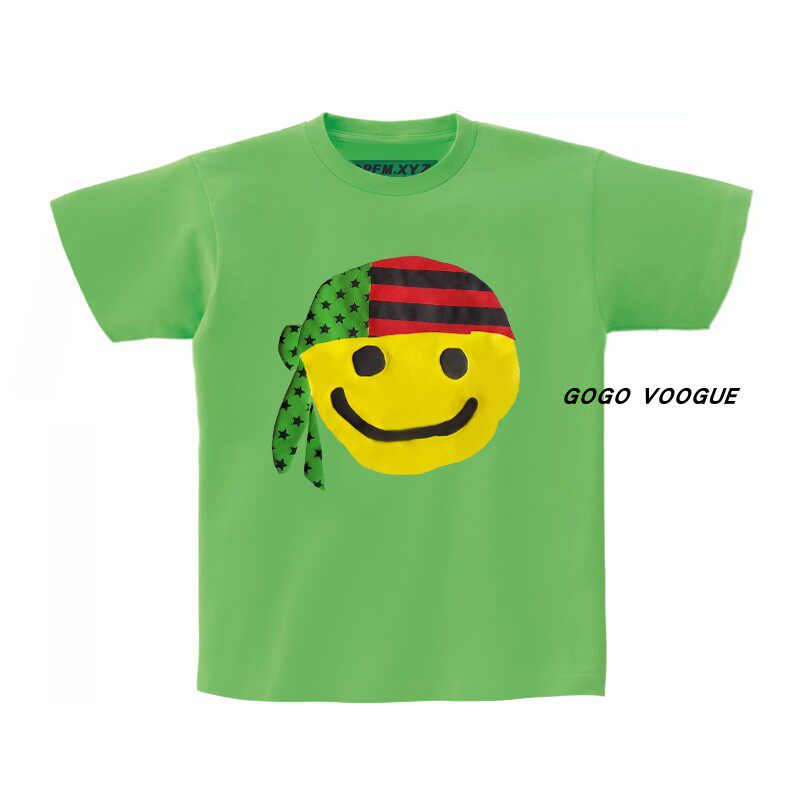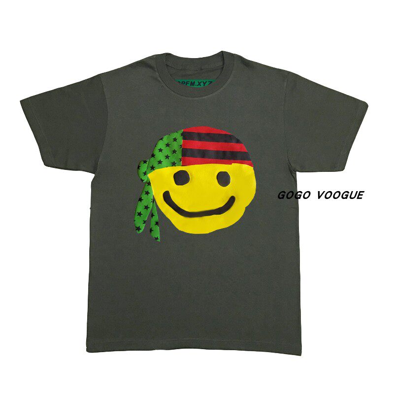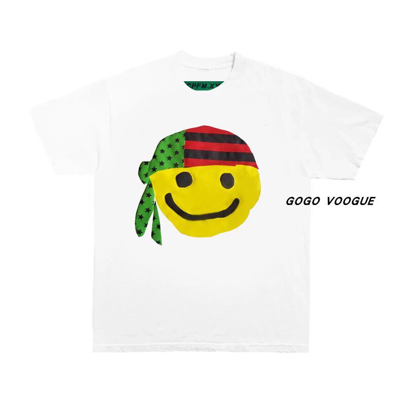 CPFM.XYZ Канье джинсовый разрывы в том же стиле, что и Fidong, желтый, улыбающийся платок, футболка с короткими рукавами