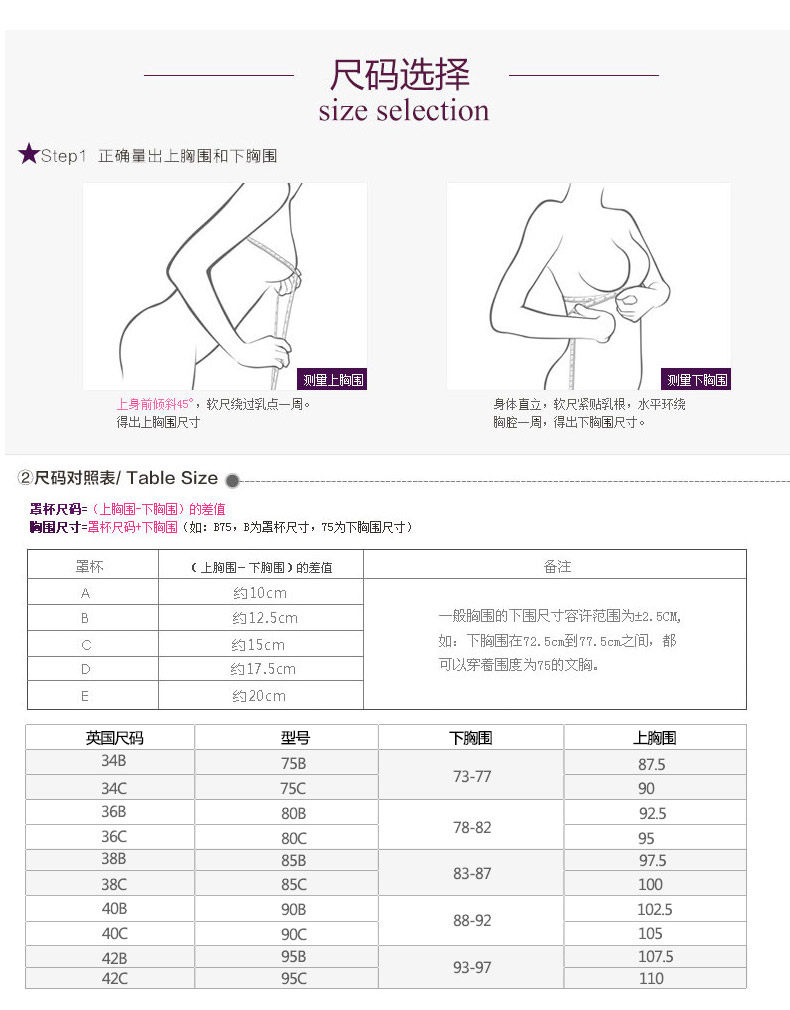 - 34A=75A 36B=80B 38B=85B 32A=70A 36A=80A 40B=90B