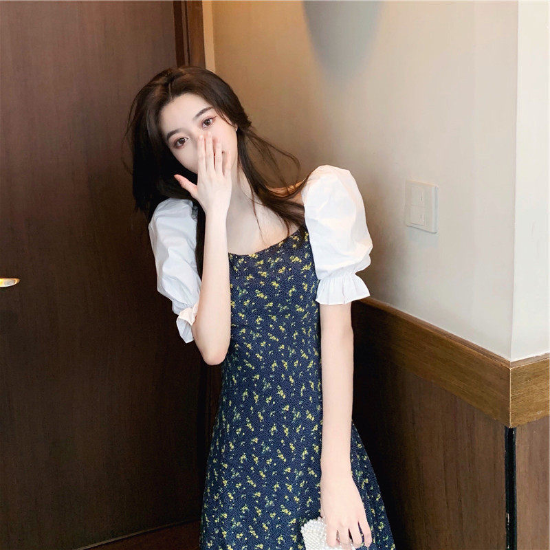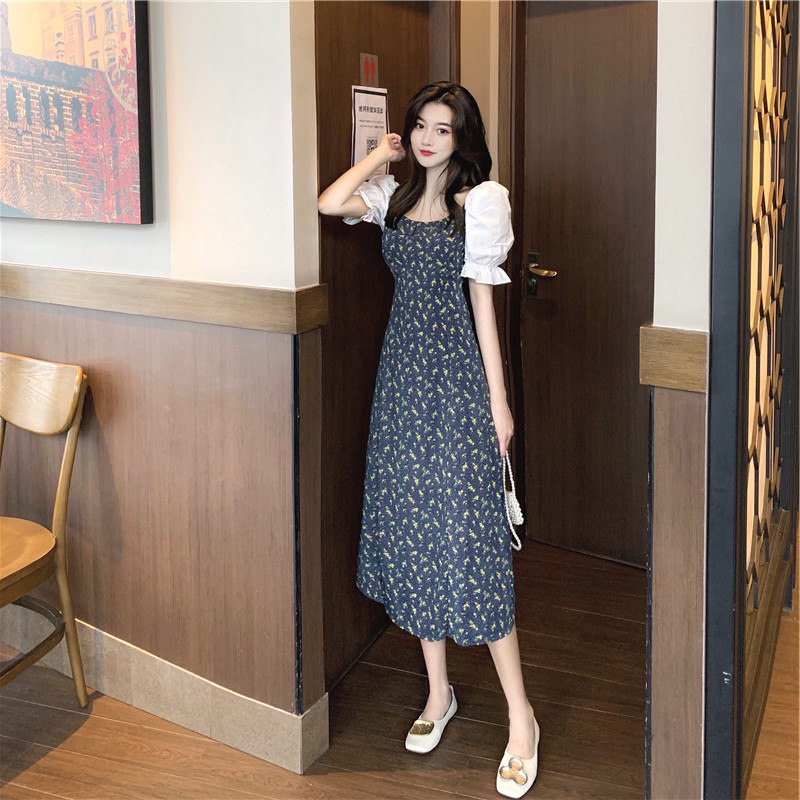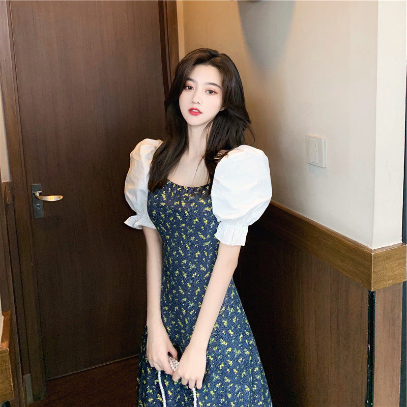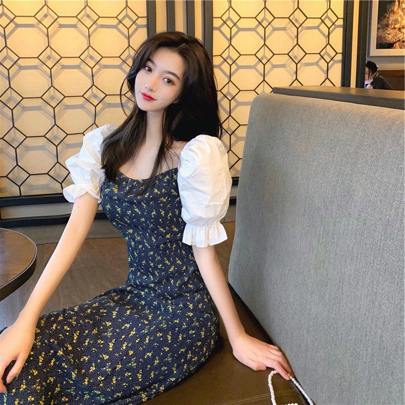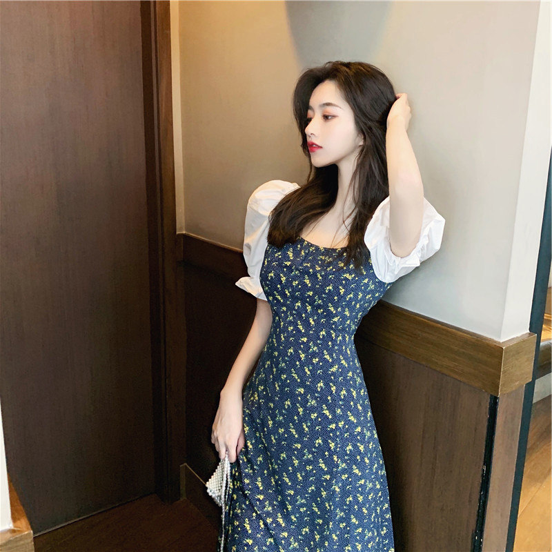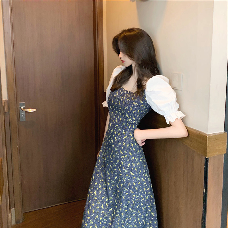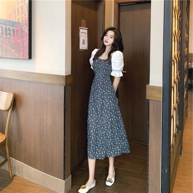 Дизайнерская длинная юбка, платье, 2021 года, французский стиль, тренд сезона, в цветочек, подходит для подростков