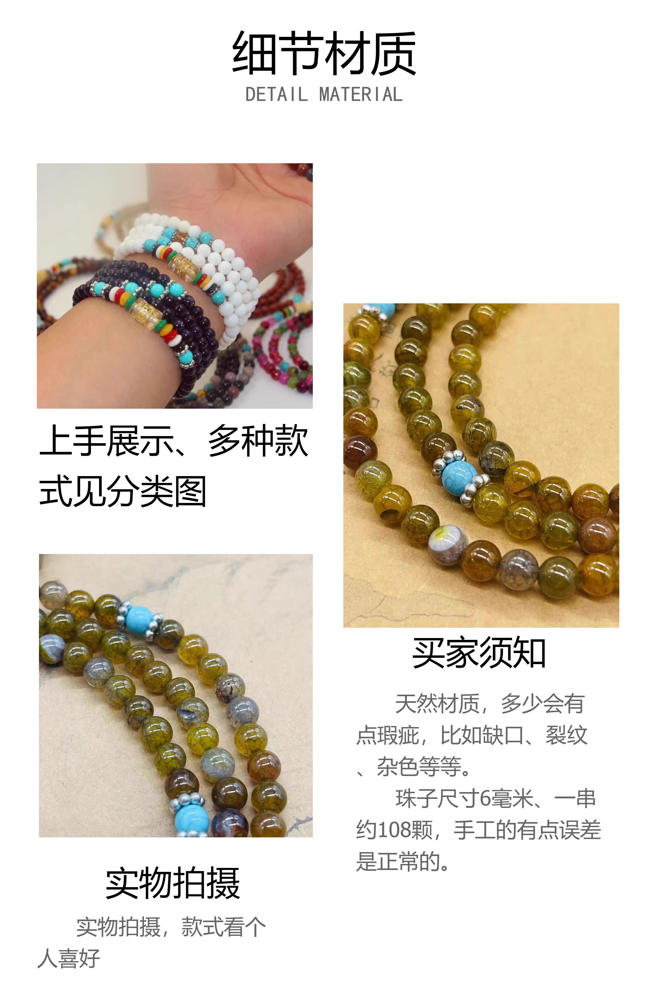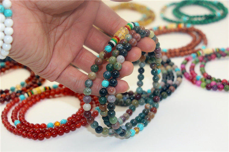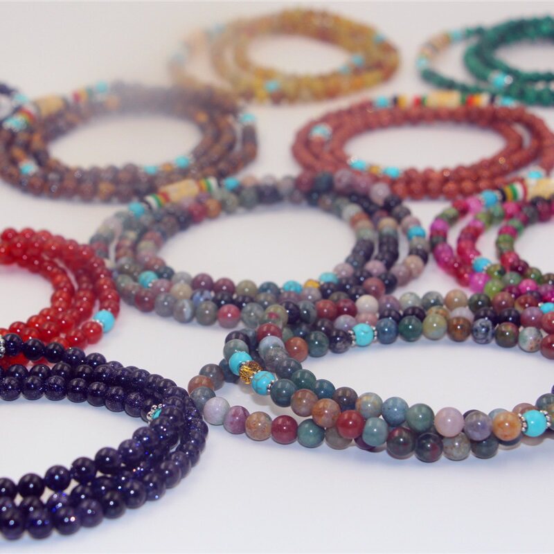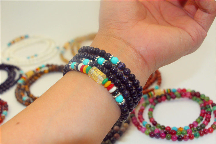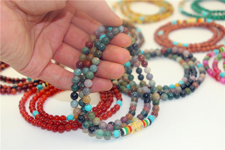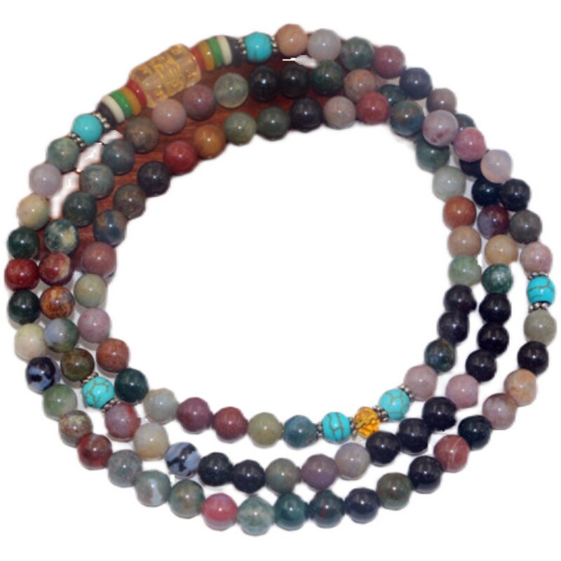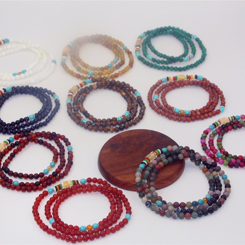 Этнический браслет, ожерелье подходит для мужчин и женщин, четки из круглых бусин, бусины, аксессуар, этнический стиль, 108 шт, для влюбленных, не выцветает