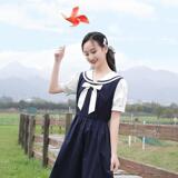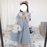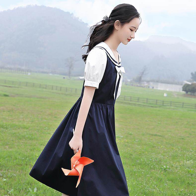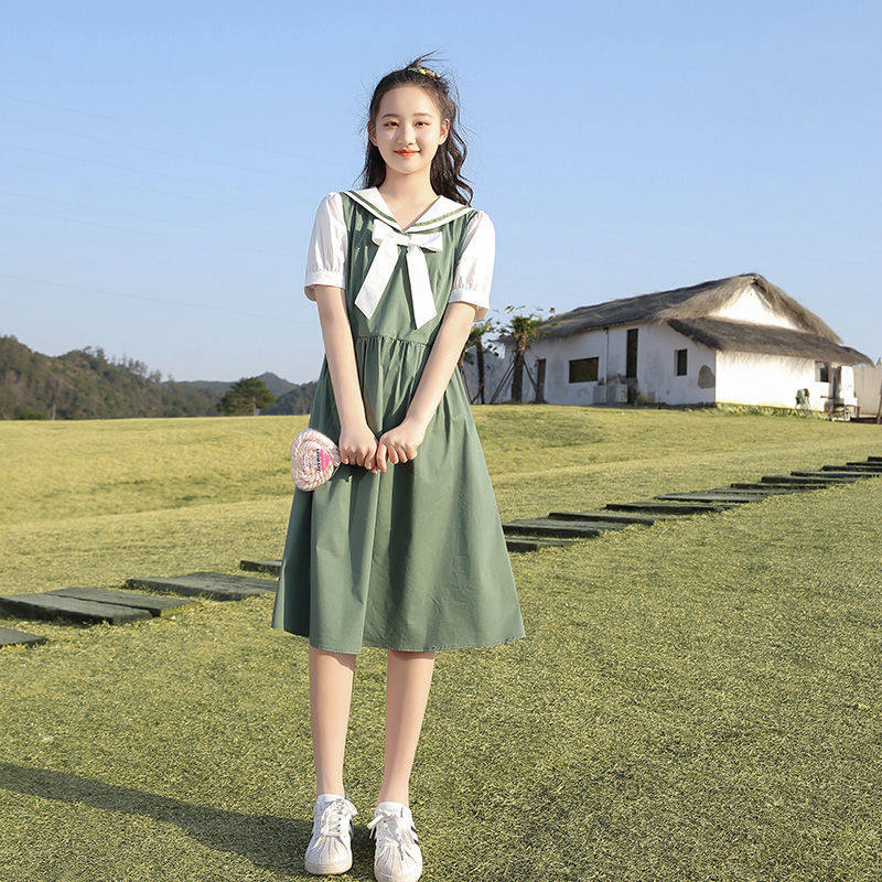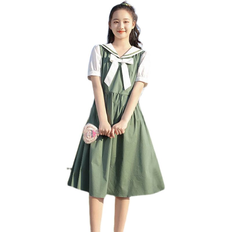 Летнее милое платье с бантиком для школьников и студентов, длинная юбка, в корейском стиле, короткий рукав, средней длины