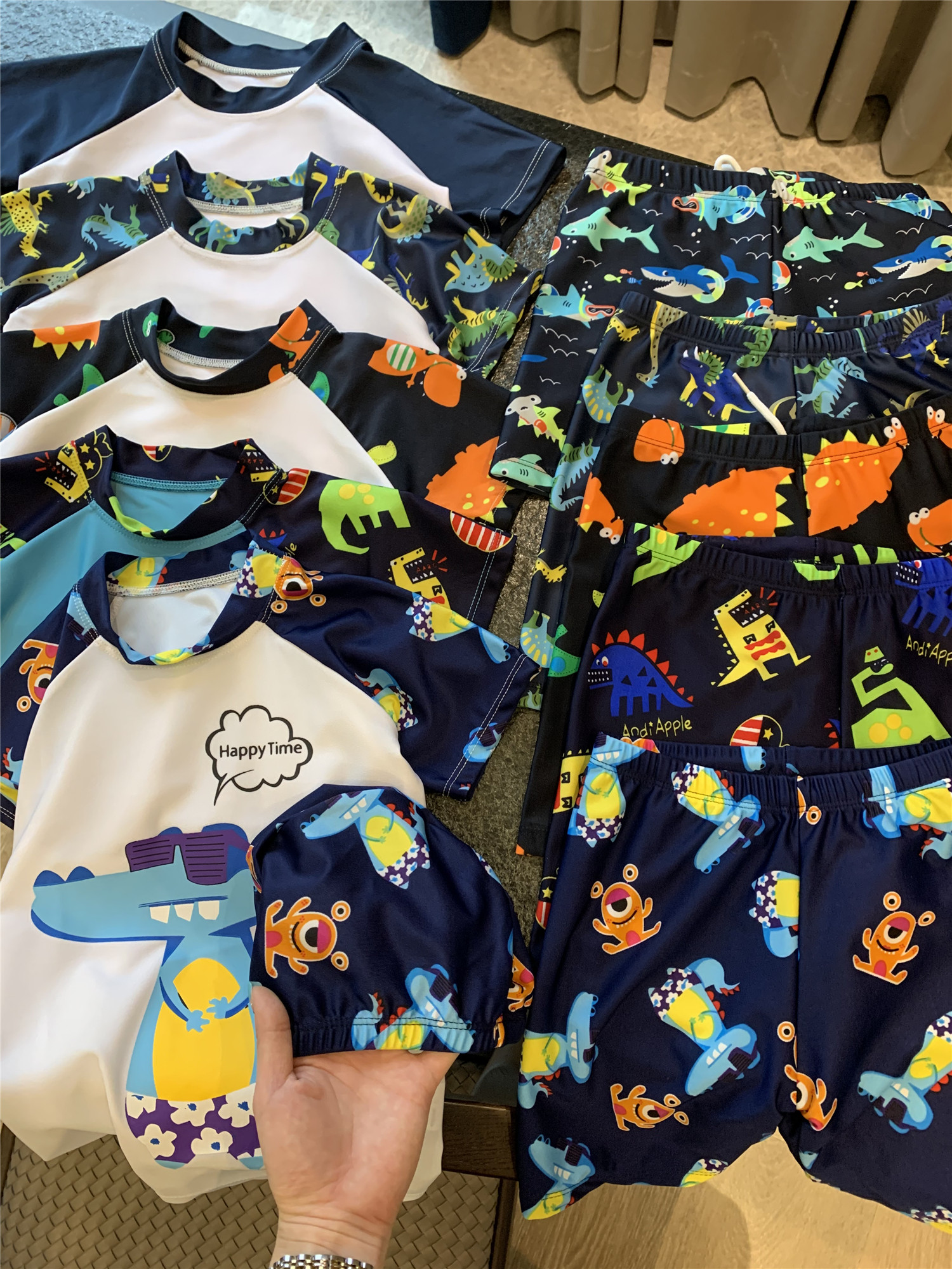 Детский купальник, штаны, плавательная шапочка, быстросохнущий мультяшный раздельный комплект для мальчиков для плавания, 3 предмета, короткий рукав