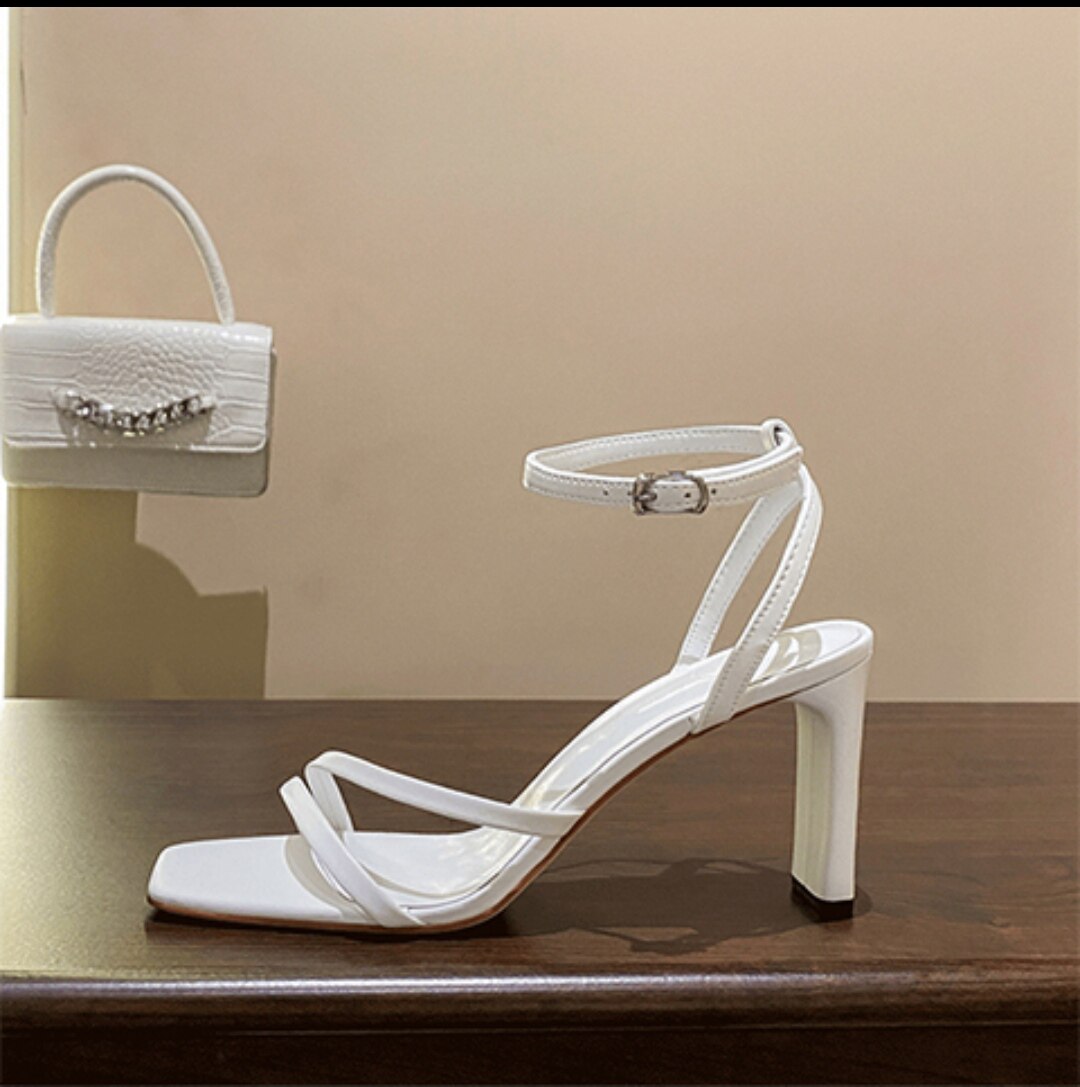 Белые сандалии, летняя универсальная обувь на высоком каблуке, 2025 года, в корейском стиле