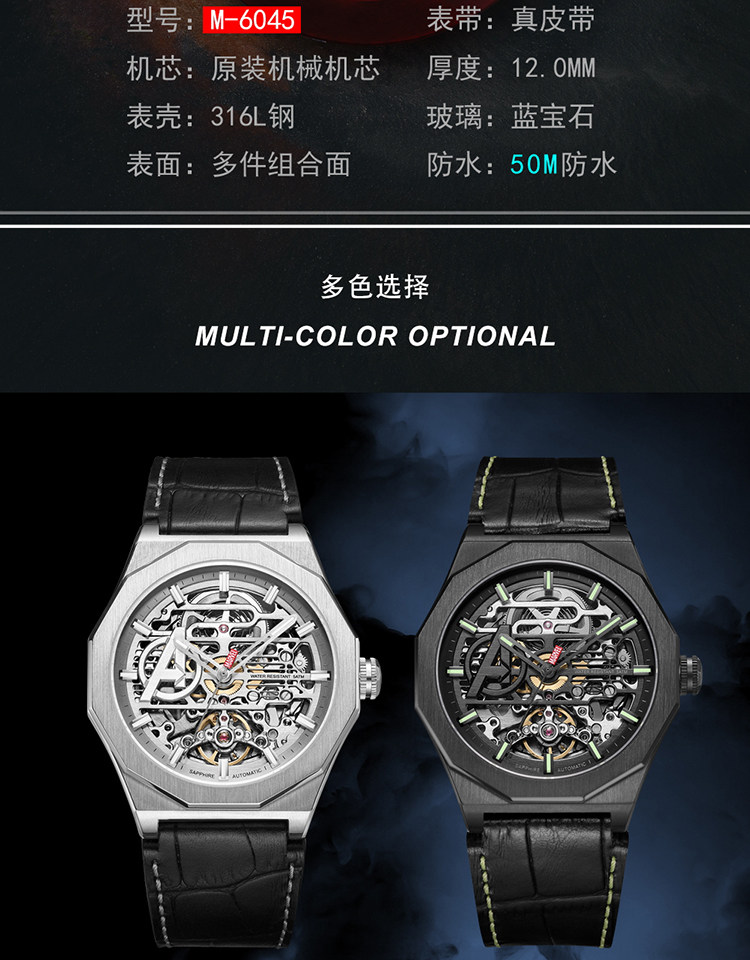 Трендовые мужские часы, механические механические часы, 2021 года