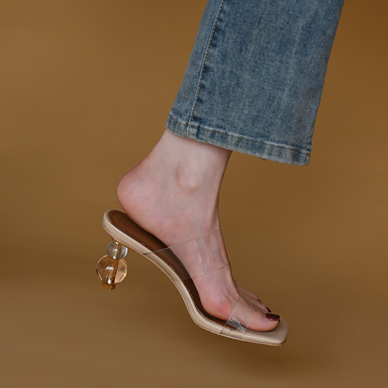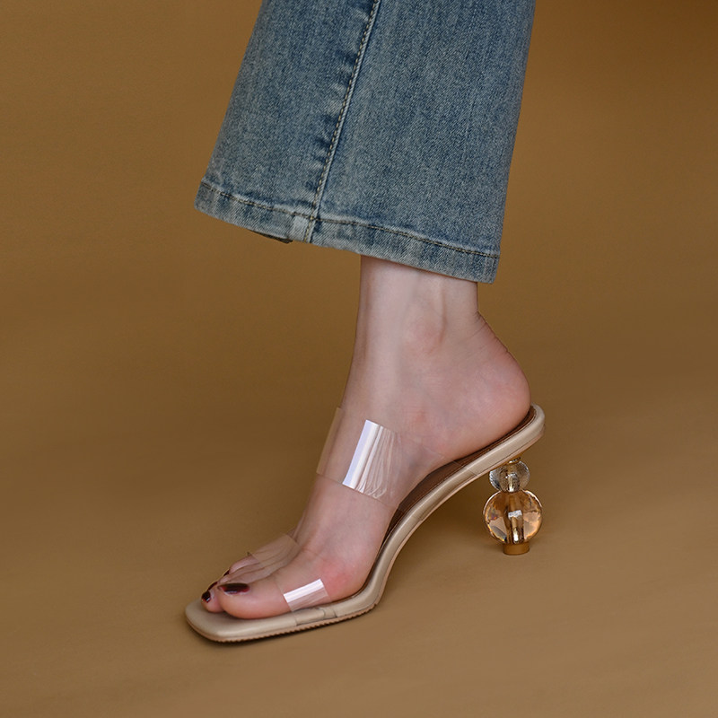 Летние туфли на высоком каблуке, нюдовые тапочки, слайдеры из ПВХ