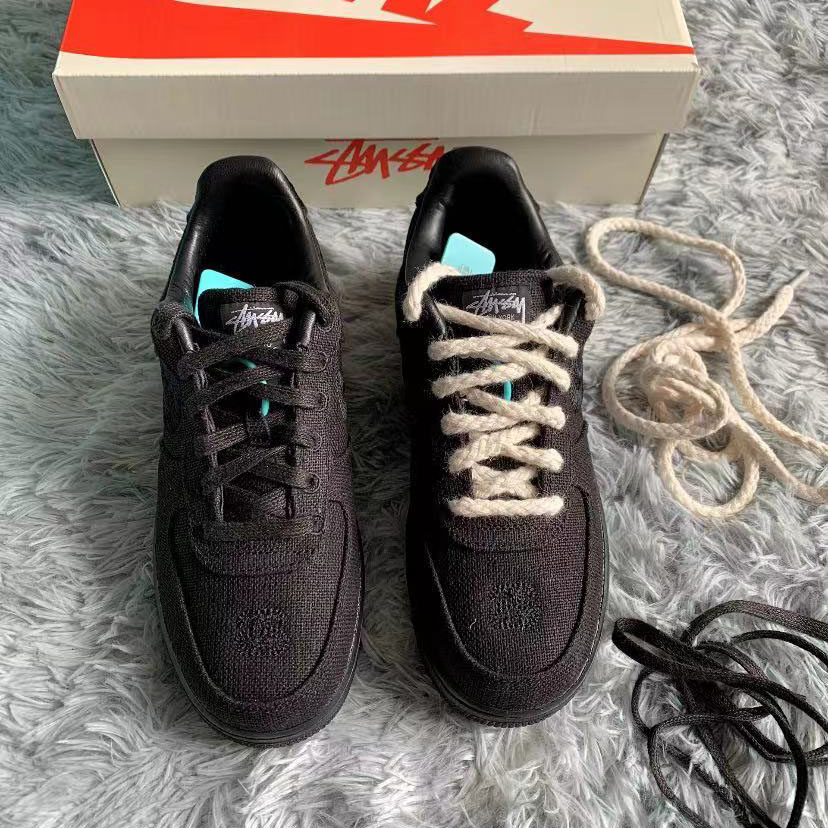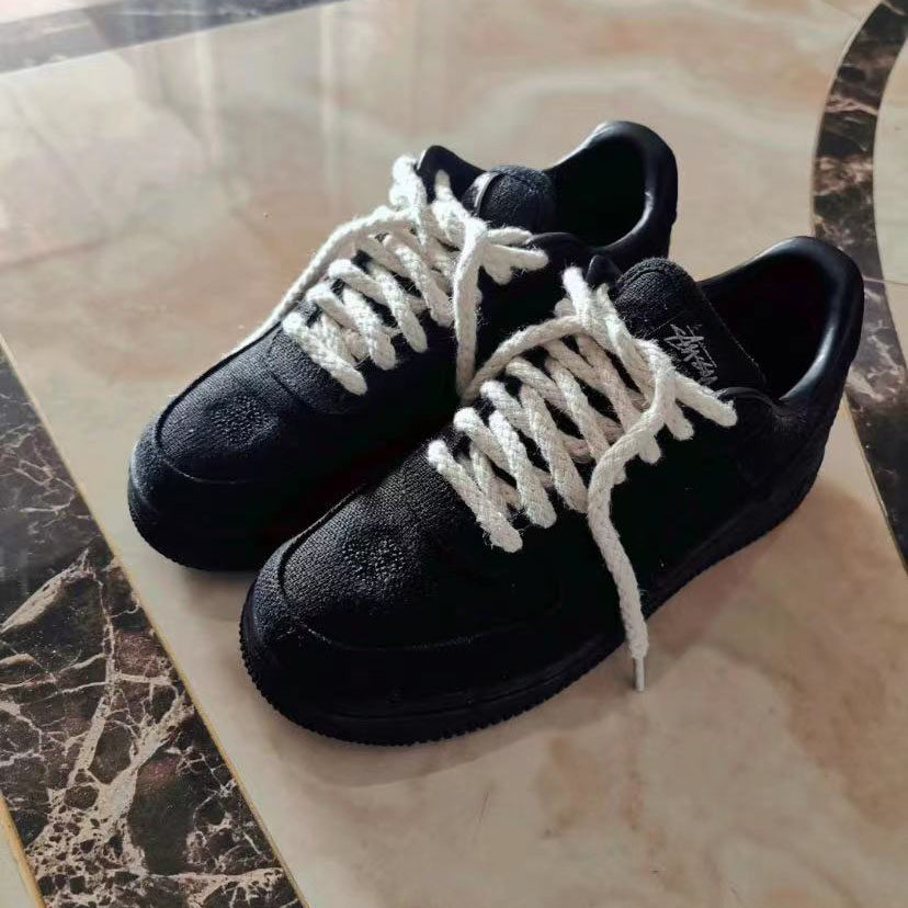 Адаптированный Airforce1low Black Retro Make Old Cotton Snewal Rope Rice Белый AF1 -ремень обуви AF1