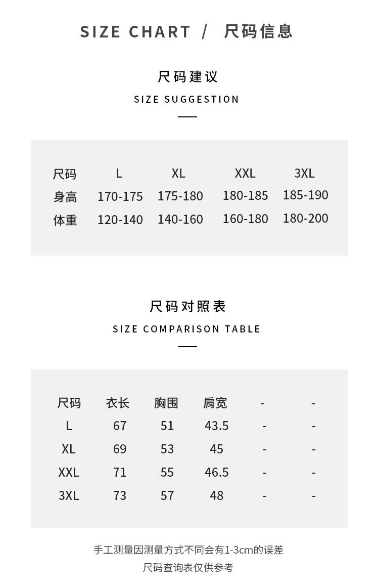 | Размер: | L [120-140 Catties], XL [140-160 Catties], 2xl [160-180 Catties], 3xl 【180-200 Catties】 |