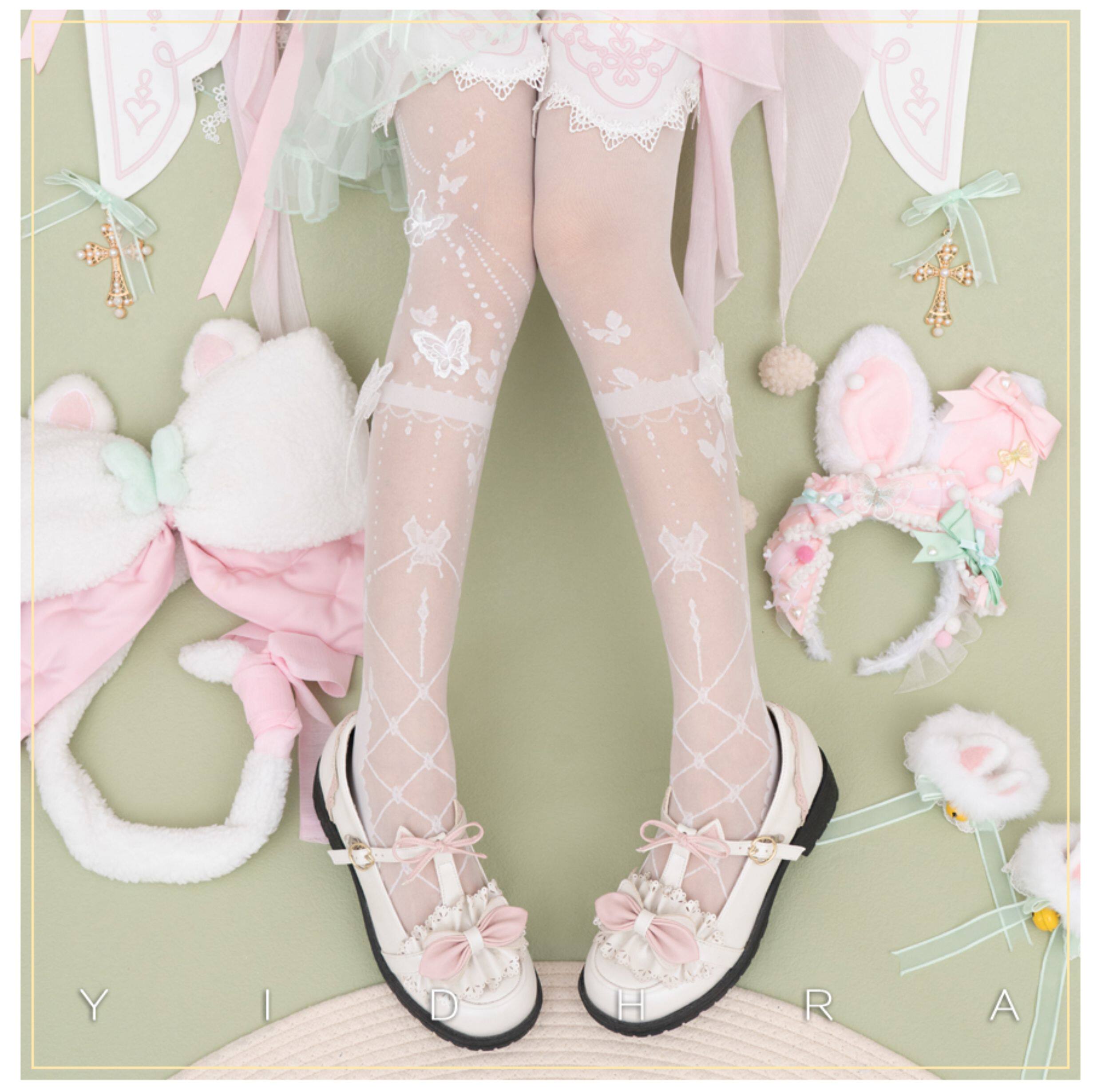 Yidhra Оригинальные летние тонкие белые колготки, стиль Лолита