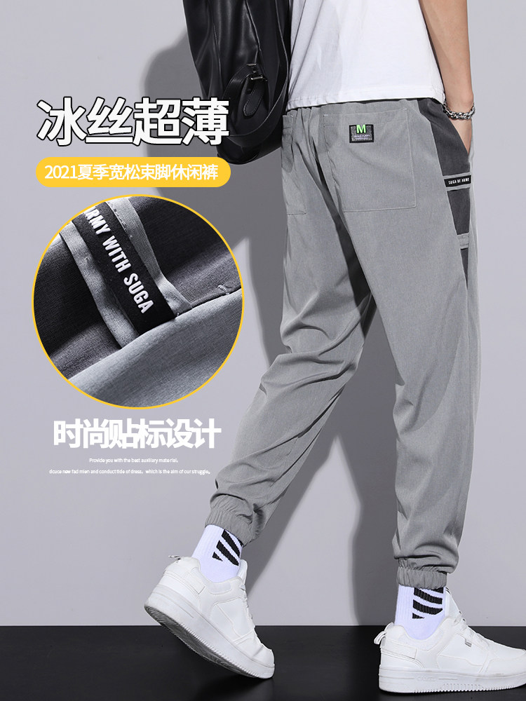 Спортивные ультратонкие тонкие шелковые штаны, летние повседневные брюки, оверсайз, свободный крой, 2021 года