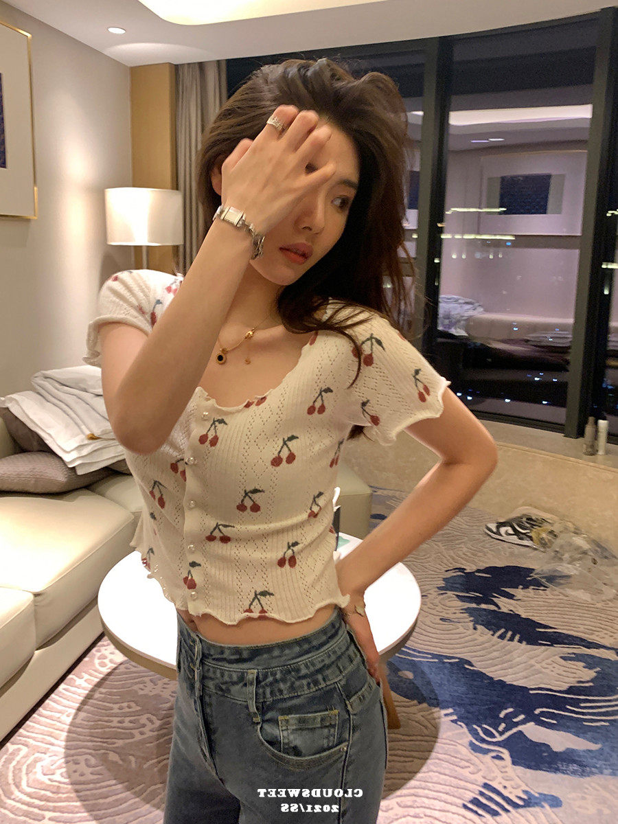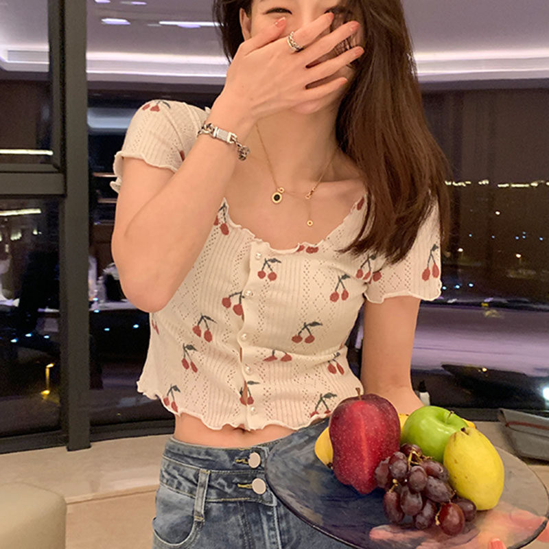 Милая летняя приталенная короткая футболка с коротким рукавом, цветочный принт