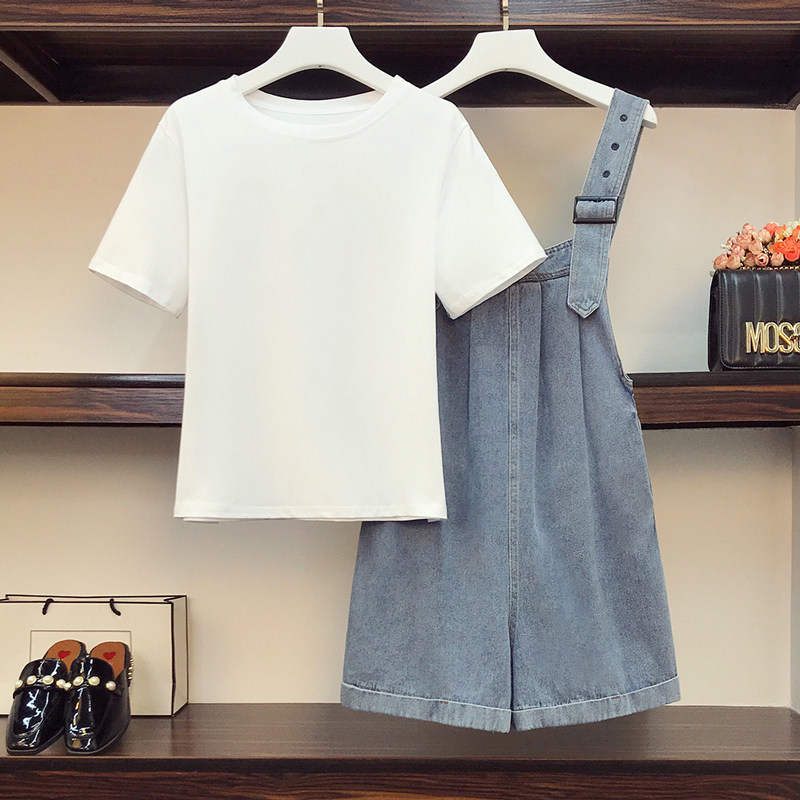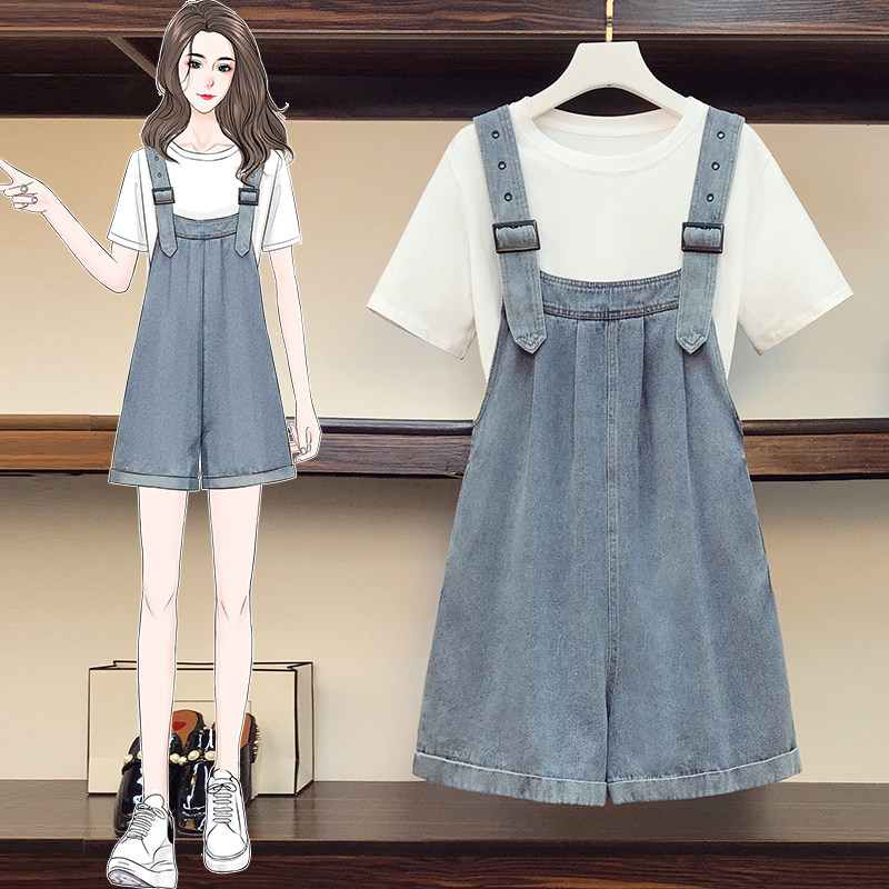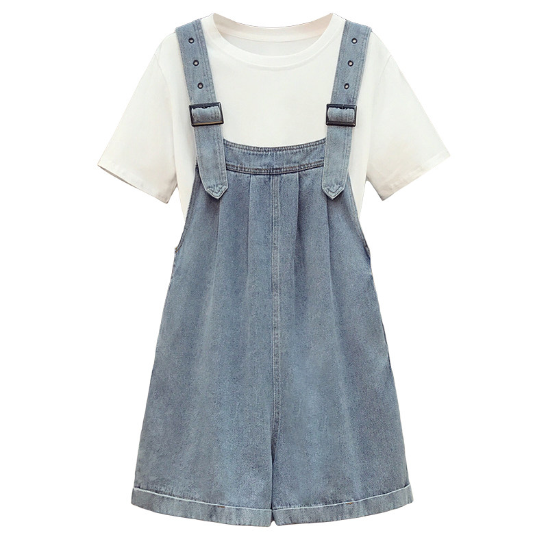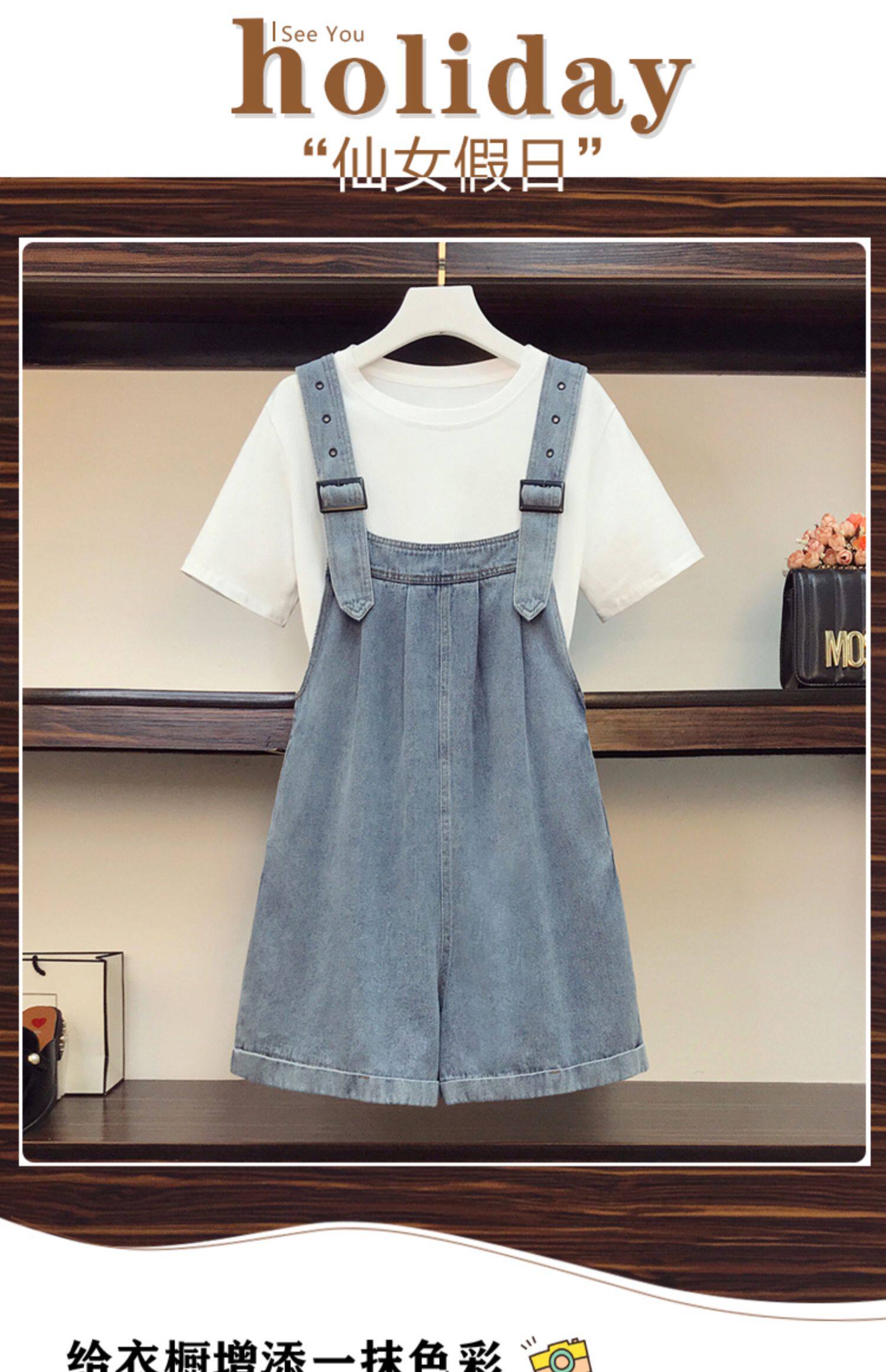 Летние джинсовые подтяжки, комплект, большой размер, подходит для полных девушек, в западном стиле