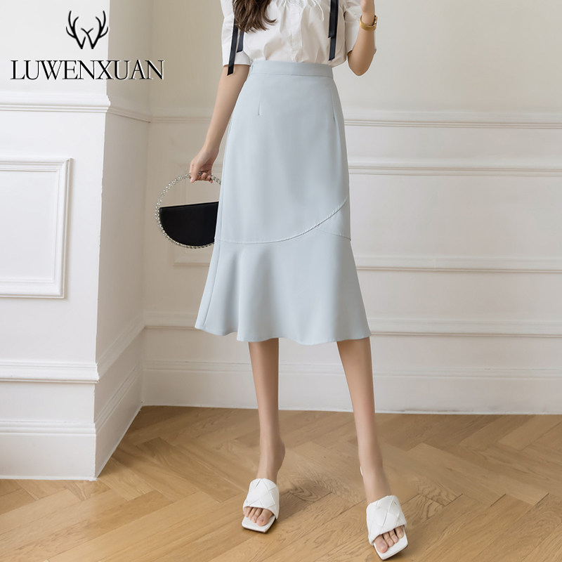 Летняя тонкая длинная юбка, поясная сумка, рыбий хвост, высокая талия, А-силуэт, коллекция 2022