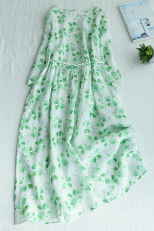 Летнее шифоновое зеленое платье с круглым воротником, юбка, коллекция 2021, свободный крой
