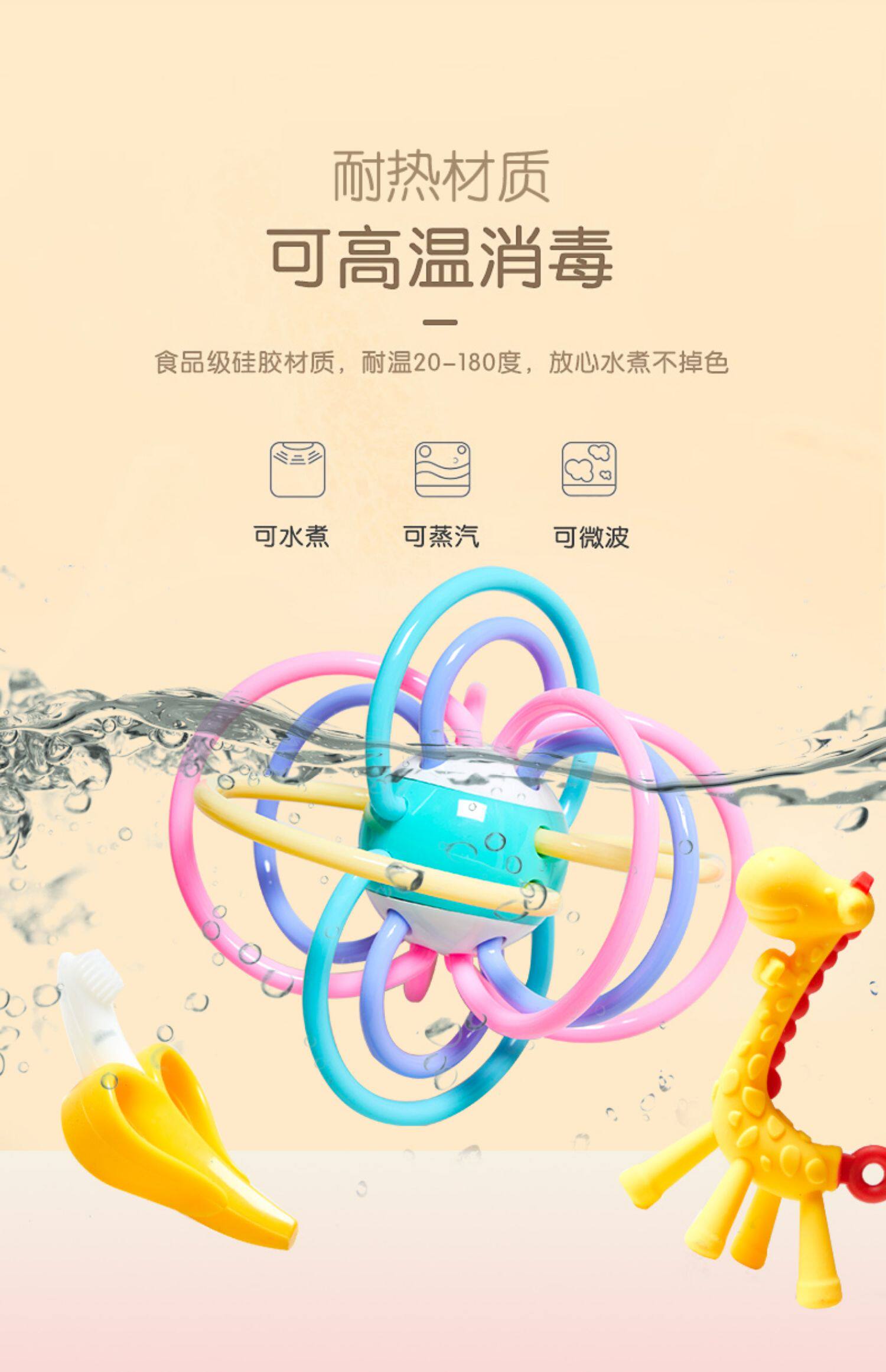 Успокаивающий детский прорезыватель с грибочками-гвоздиками, силиконовая игрушка, защитная хваталка