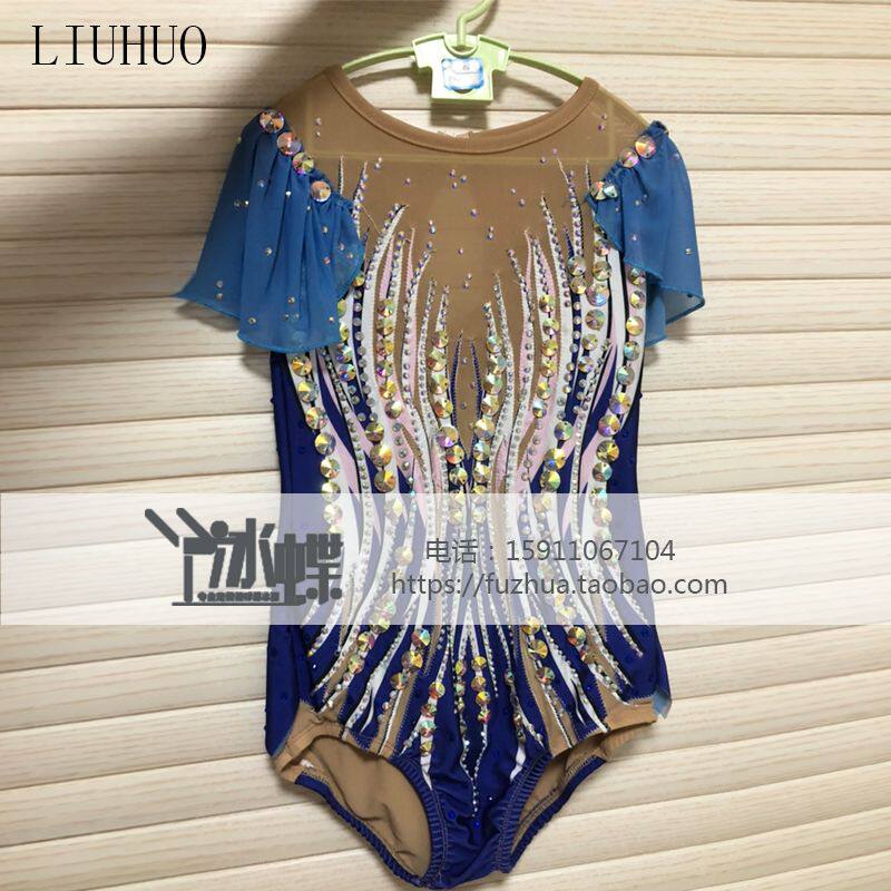 Детская олимпийская синяя одежда для гимнастики, фигурное катание, делается под заказ