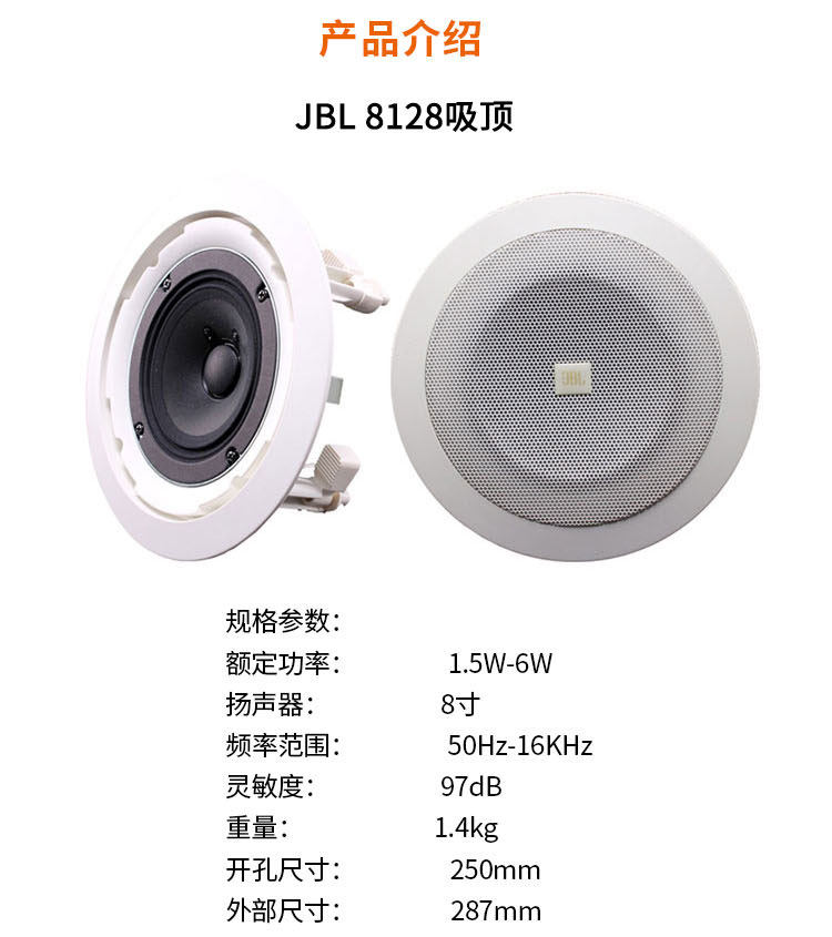 Пакет фоновой музыки Встроенный потолочный динамик JBL 8128 с U-портом Пакет аудиотрансляций Bluetooth
