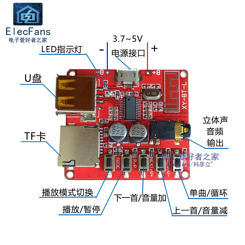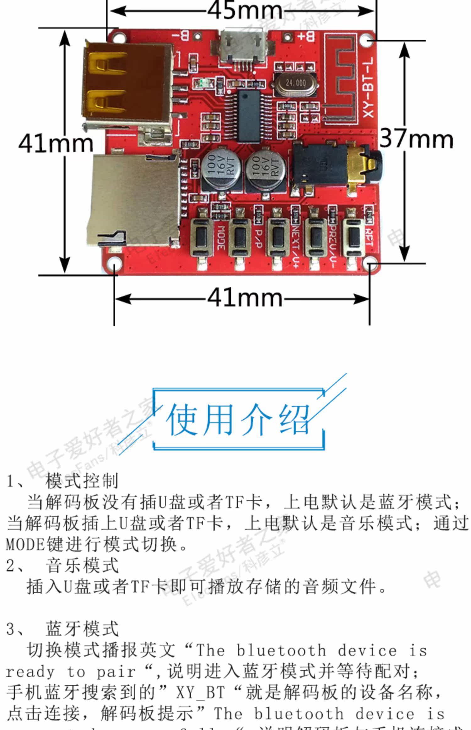 Bluetooth 4.1 Decoding Poard MP3 Неразрушающая коробка загрузки