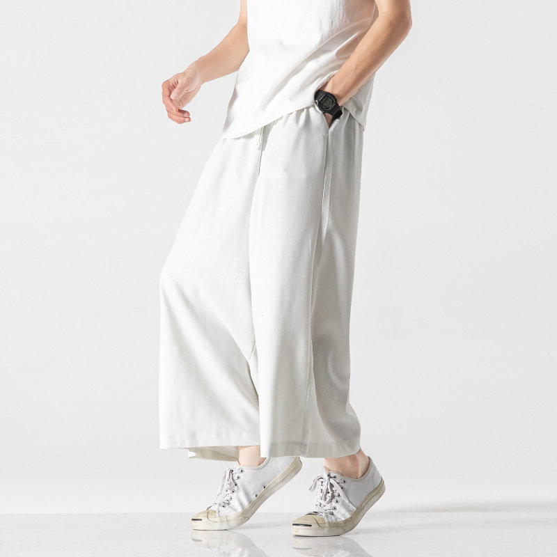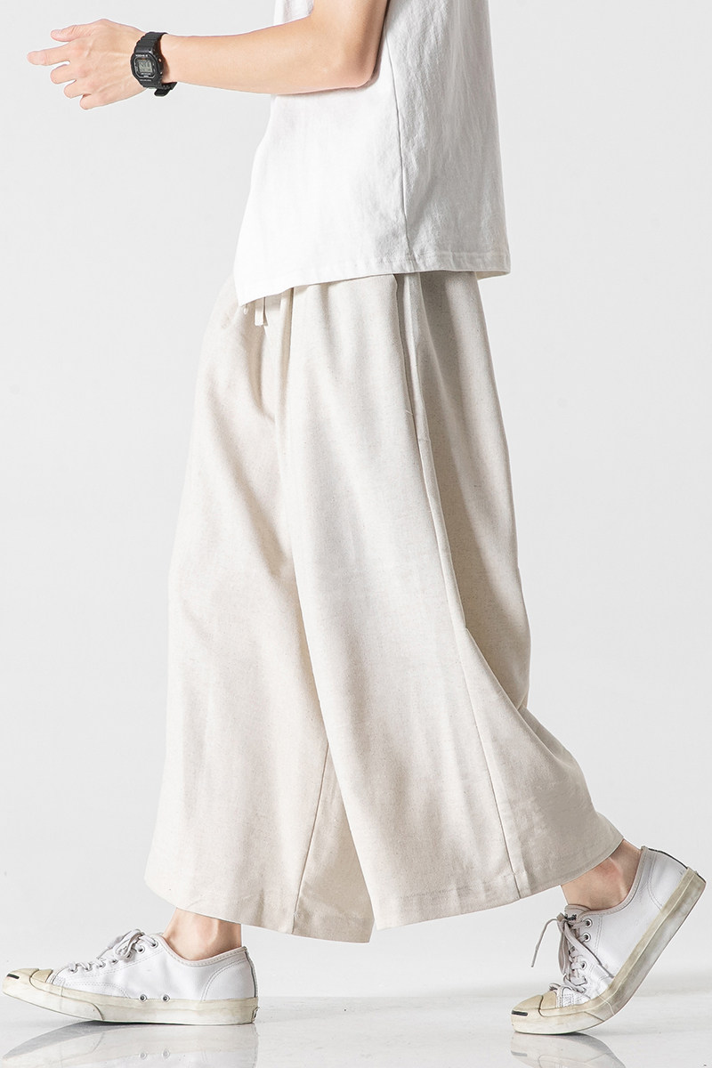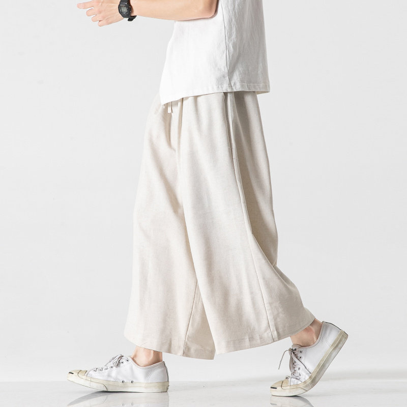 Летние штаны, 2023, большой размер, китайский стиль, из хлопка и льна, свободный прямой крой