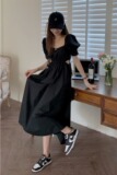 Платье, длинная юбка, французский стиль, квадратный вырез, рукава фонарики, высокая талия