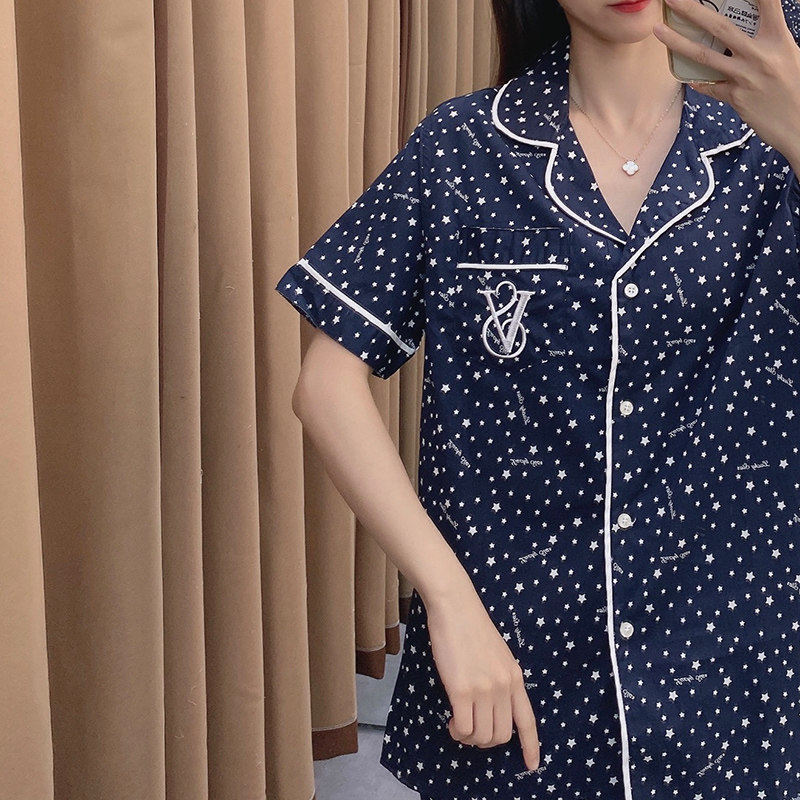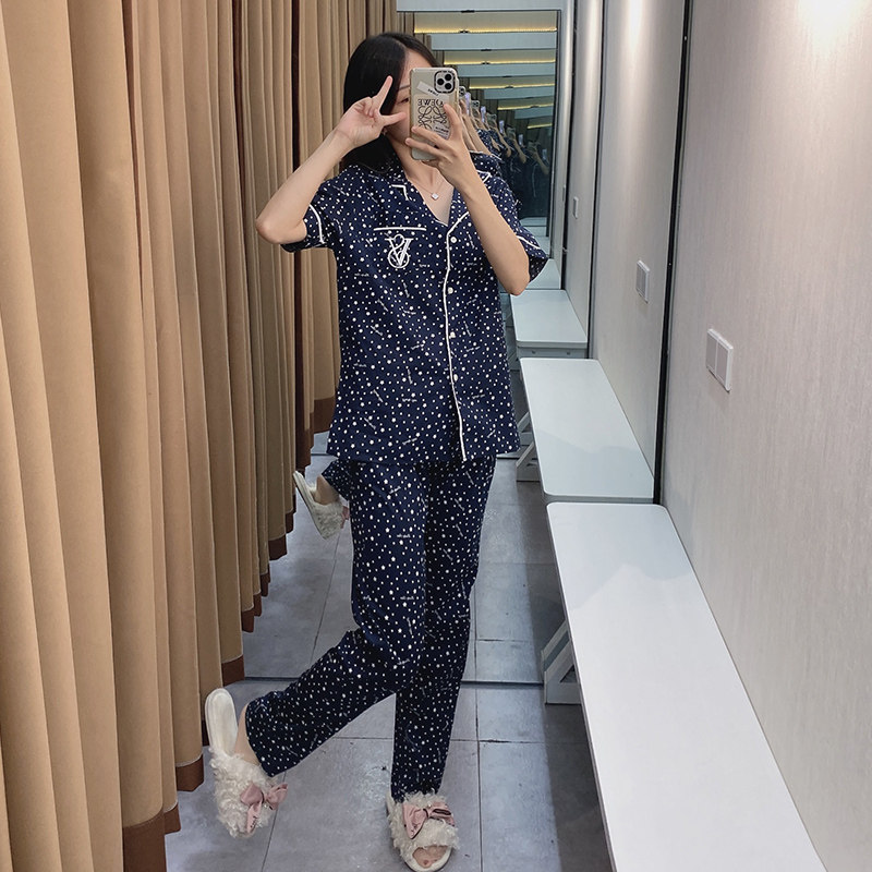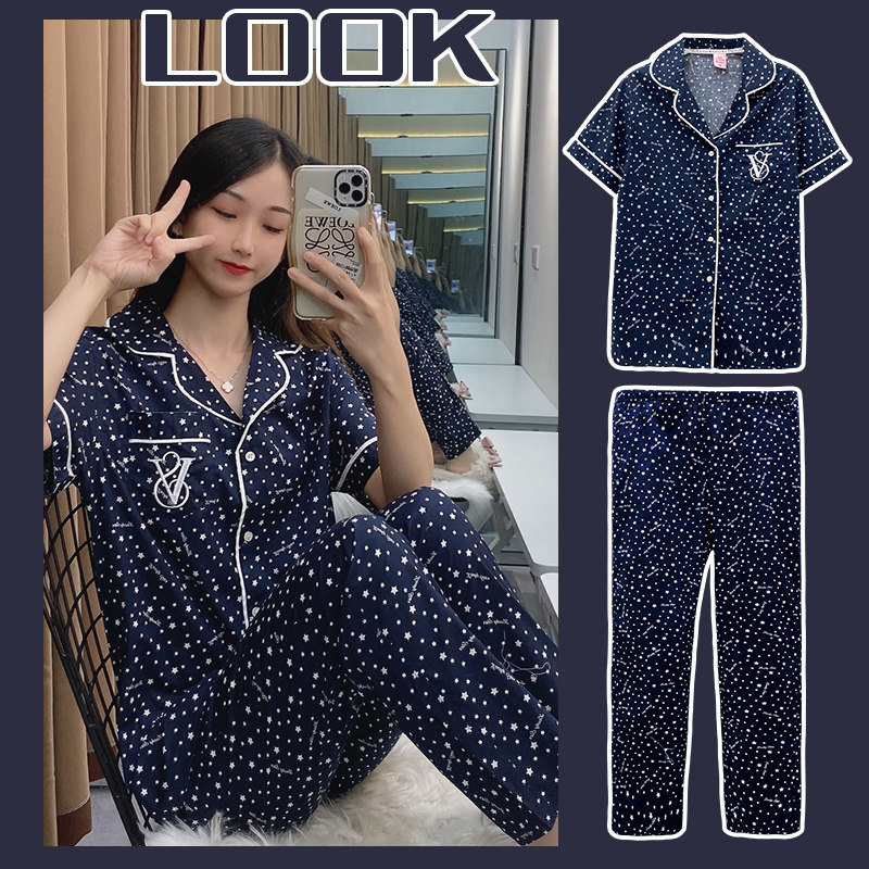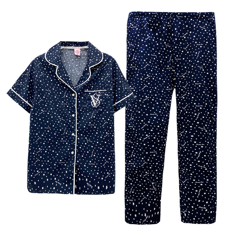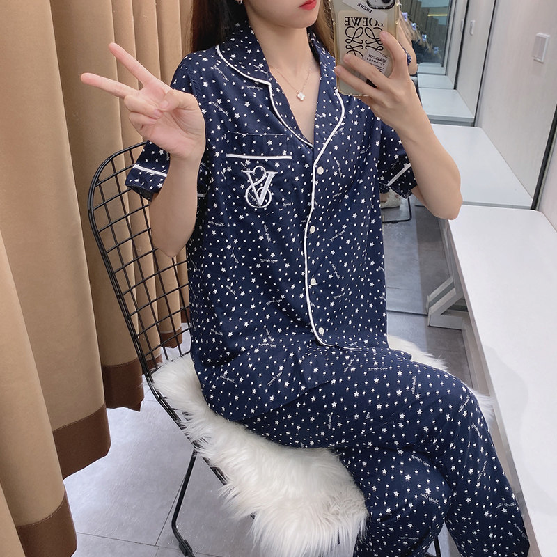 Летняя хлопковая пижама, тонкие штаны, комплект, кардиган, короткий рукав, коллекция 2021