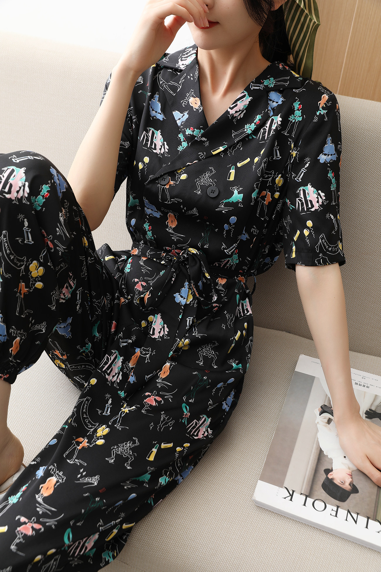 Fat Ding Blogger Style ~ Атмосфера сильна, личностная печатная воротника с двумя светящимися двойными интеллектуальными комбинезонами талии талию
