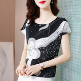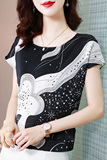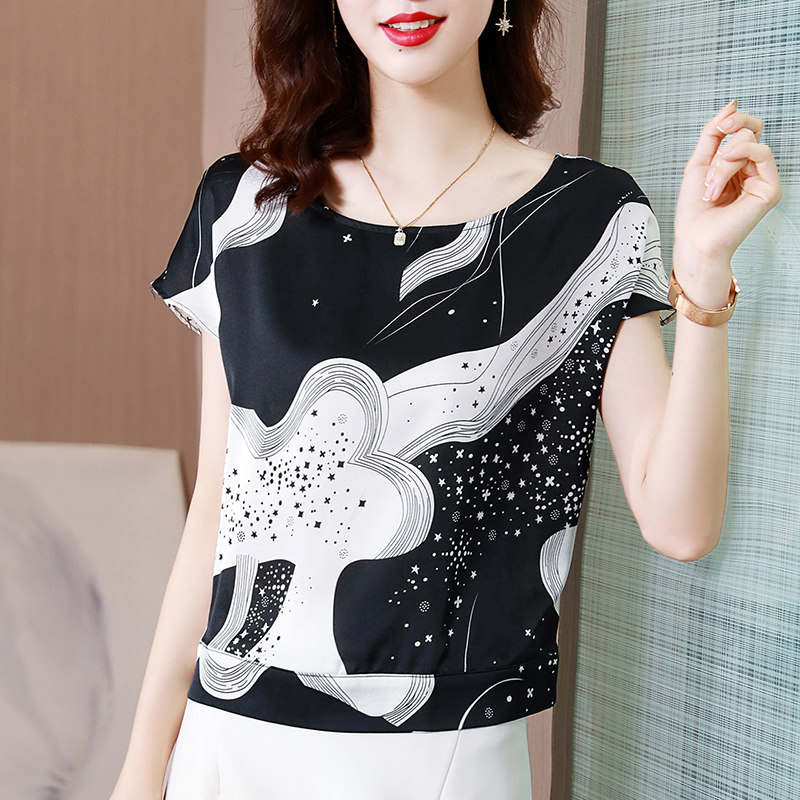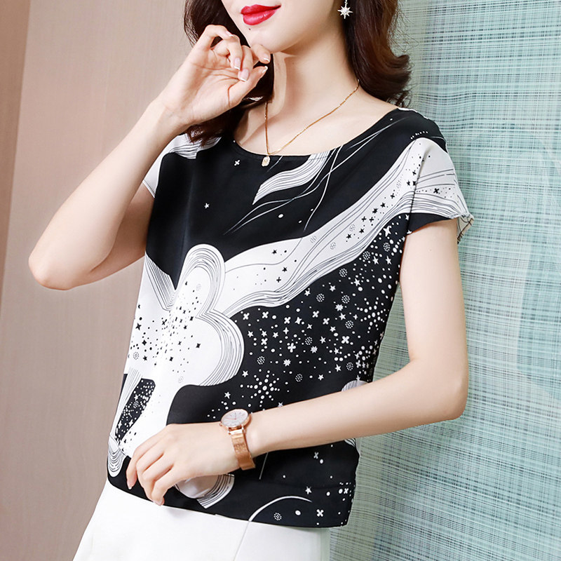 Шифоновая летняя рубашка, короткий рукав, свободный крой, коллекция 2023, цветочный принт
