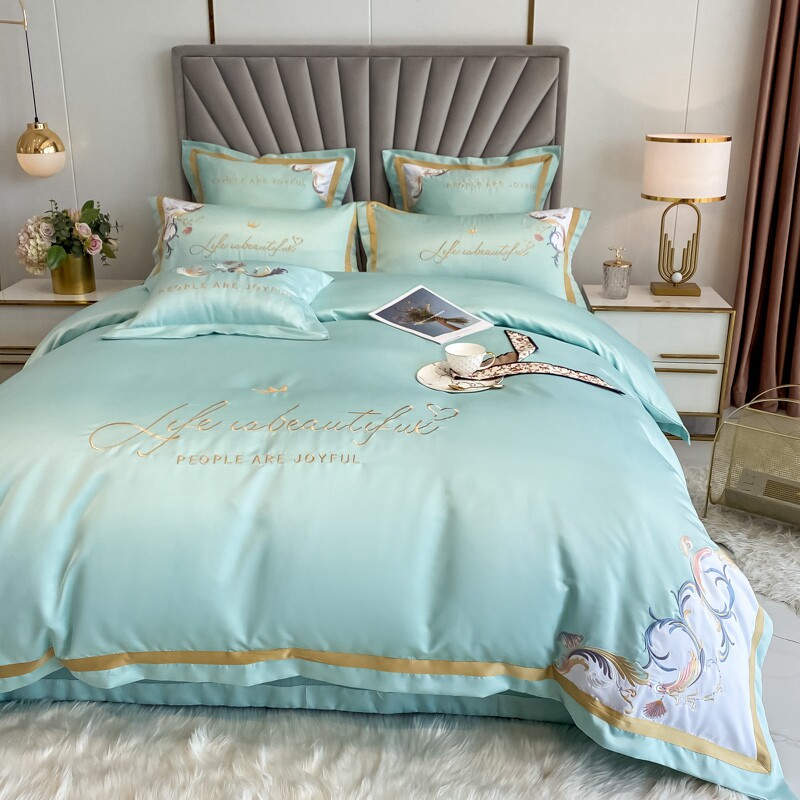 南极人 Хлопковый комплект, кровать, простыня, пододеяльник, легкий роскошный стиль, 4 предмета, с вышивкой