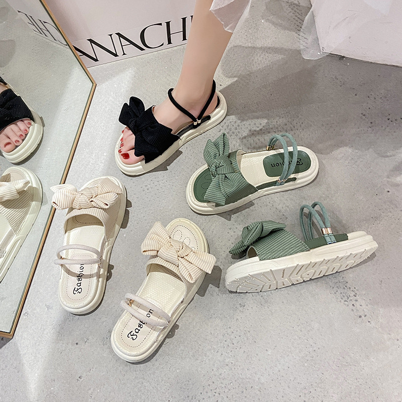 Милые универсальные босоножки с бантиком, популярно в интернете, коллекция 2021