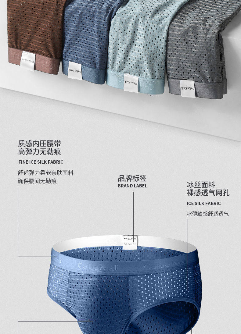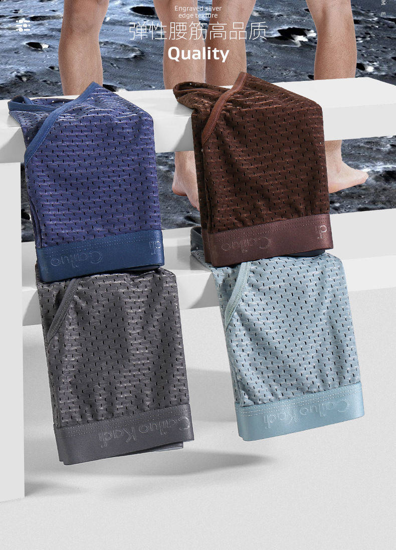 Мужские шелковые дышащие комфортные трусы, спортивное нижнее белье, средняя посадка