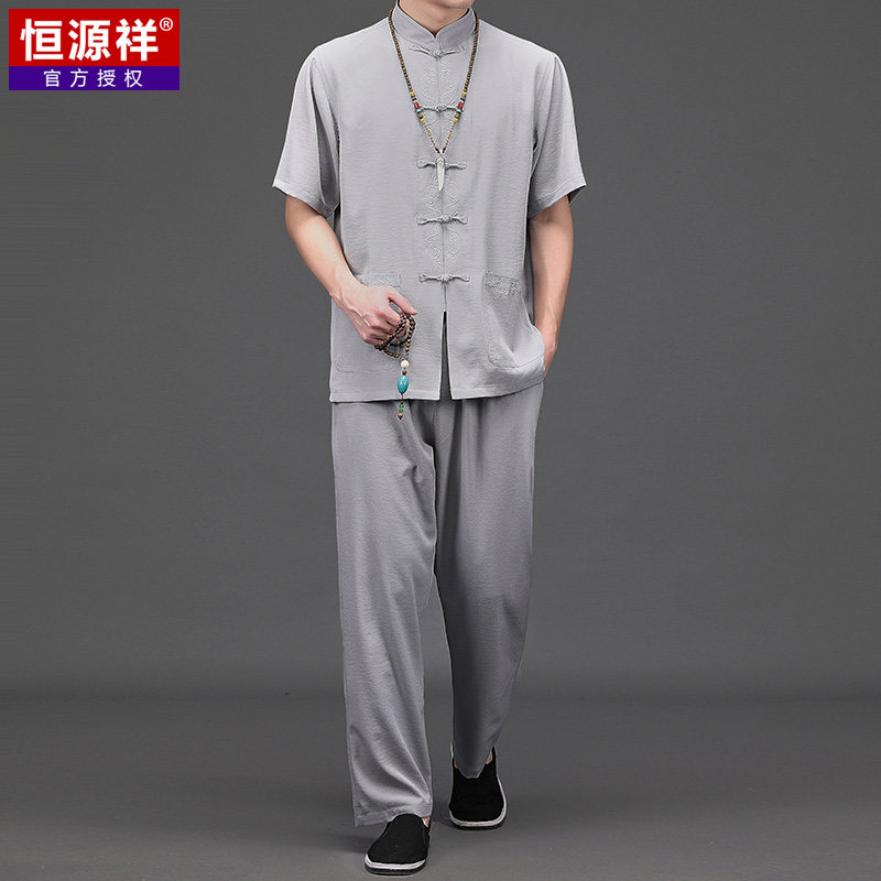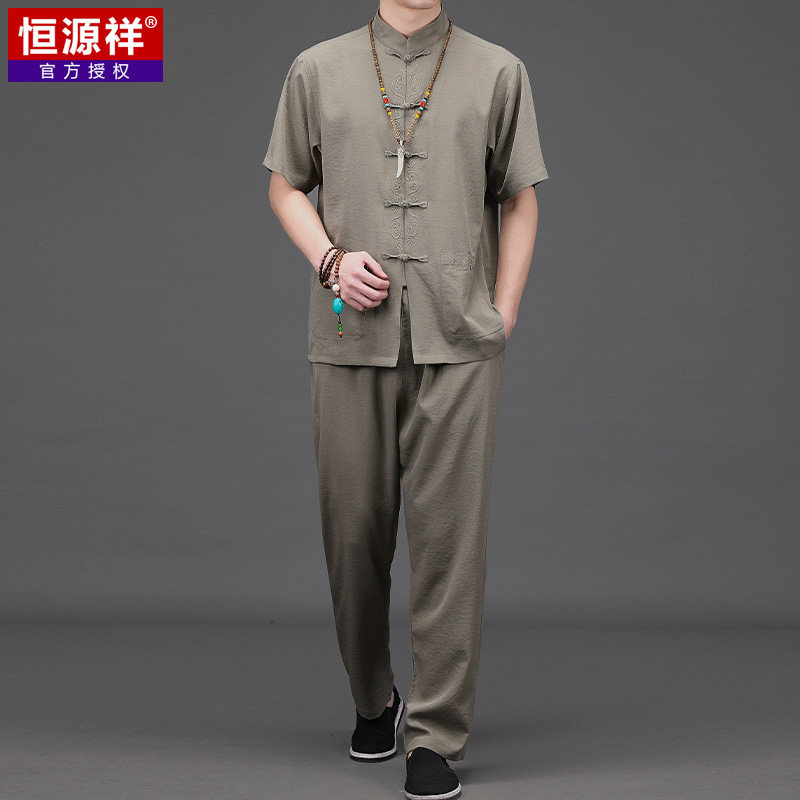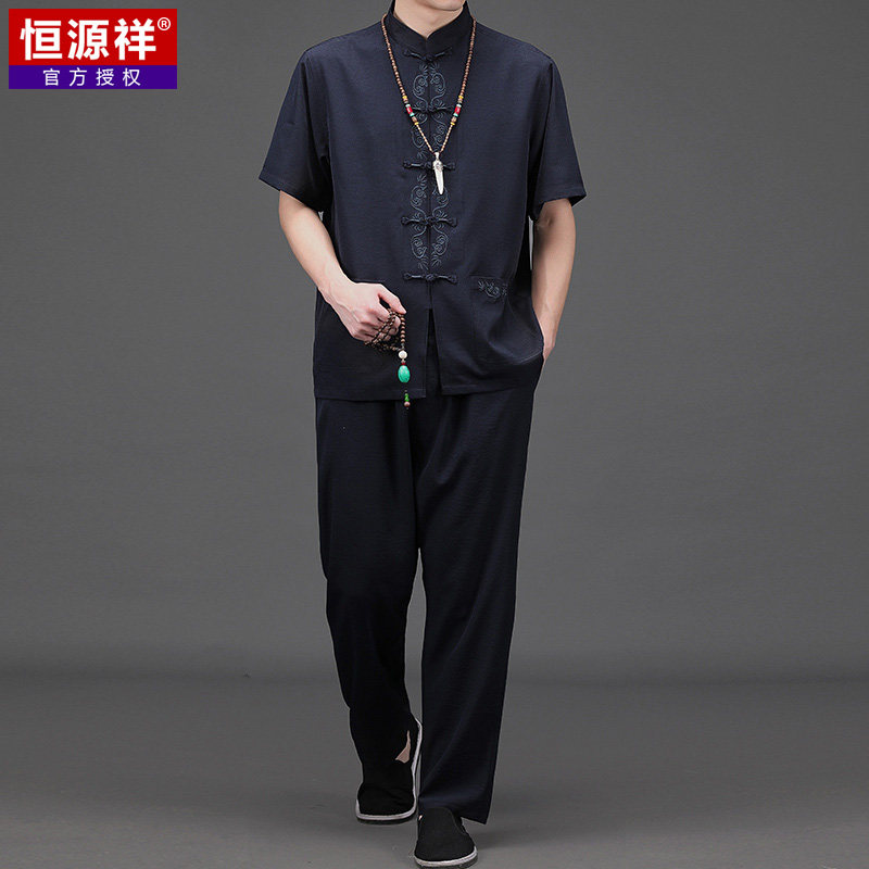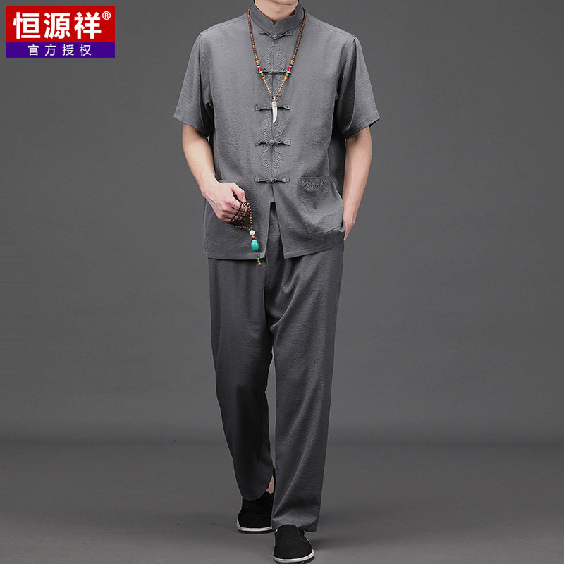 恒源祥 Летнее ханьфу для пожилых людей, тонкий комплект, летняя одежда, для среднего возраста, китайский стиль