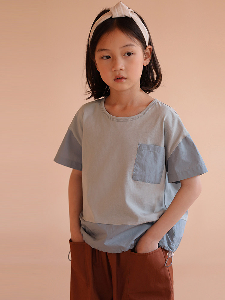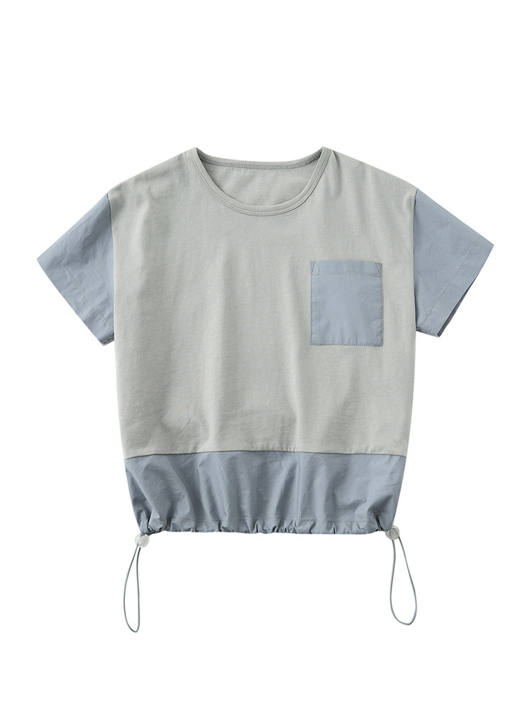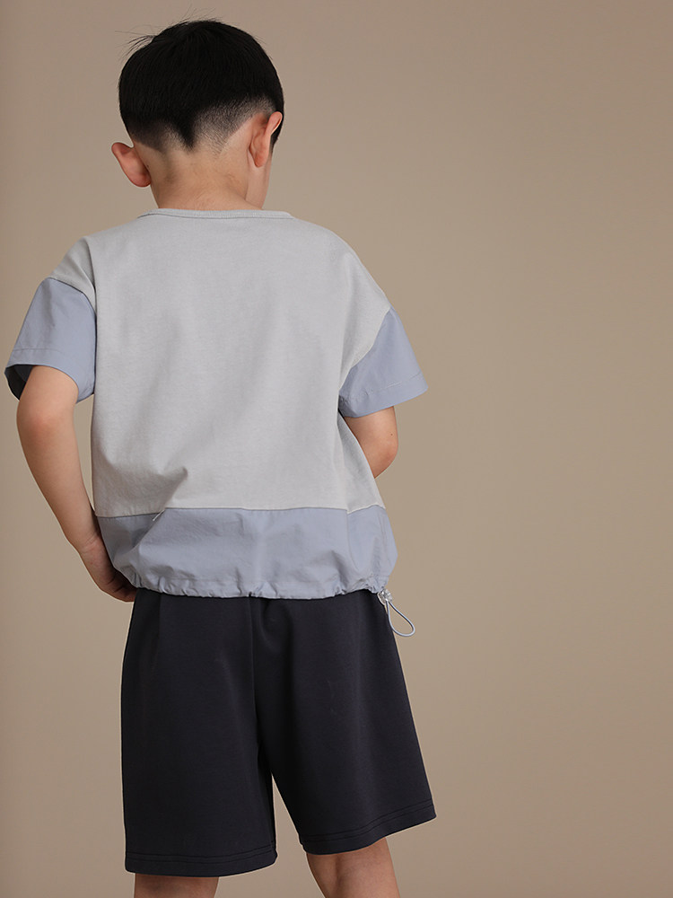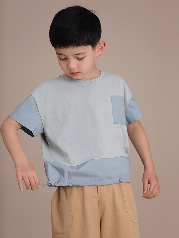 Детская одежда Haqi, летняя новинка для мальчиков и девочек, сращивание родителей и детей из чистого хлопка, контрастного цвета, с круглым вырезом, на шнурке, свободная и универсальная, с короткими рукавами