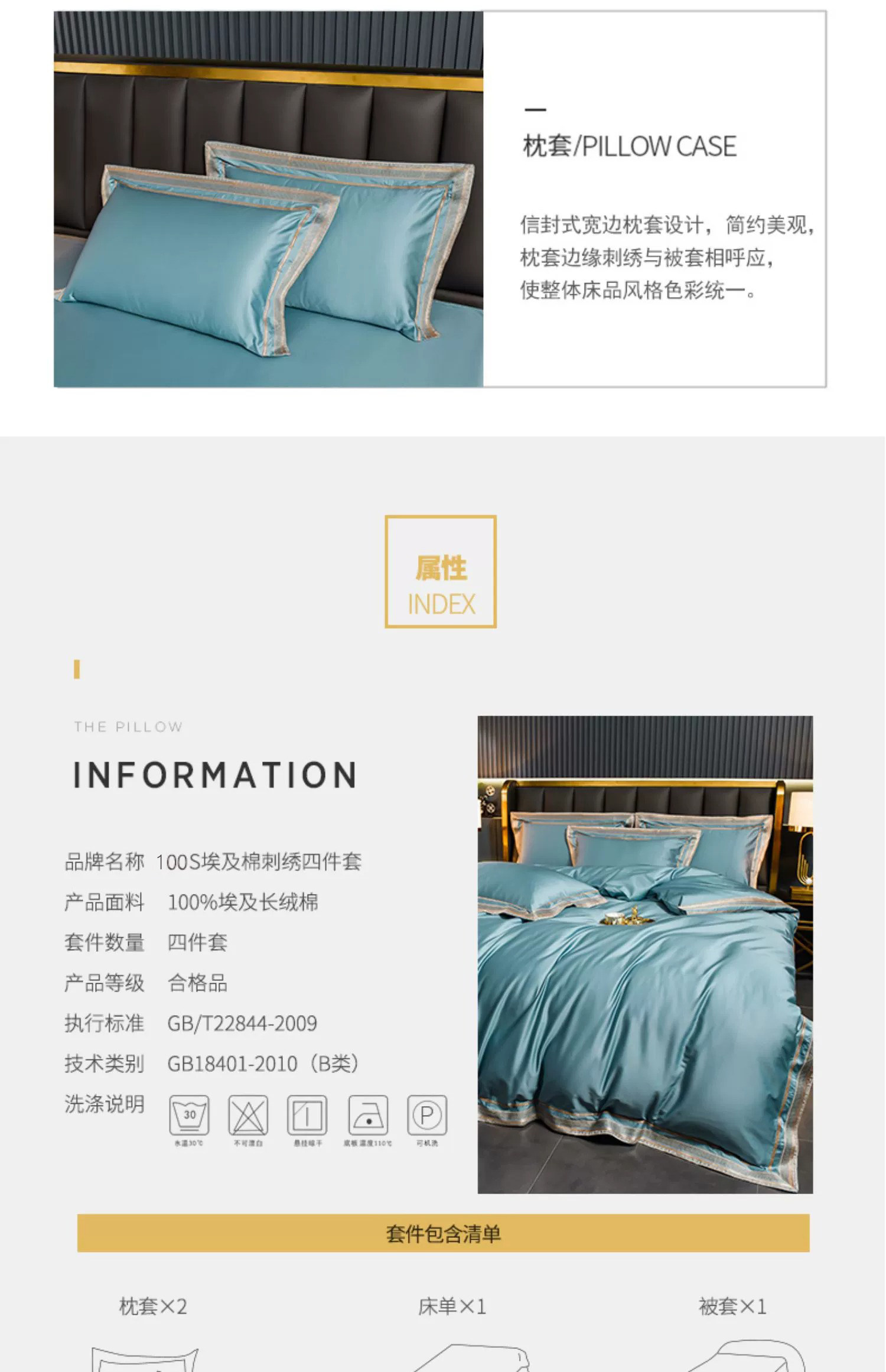 Хлопковый комплект, простыня, пододеяльник, 4 предмета, легкий роскошный стиль, изысканный стиль, постельные принадлежности