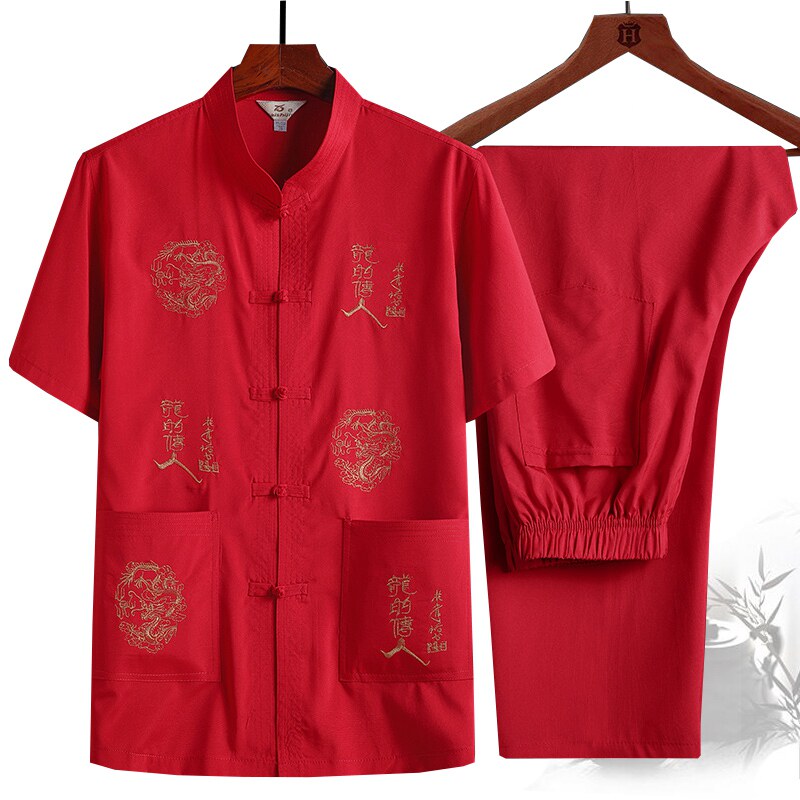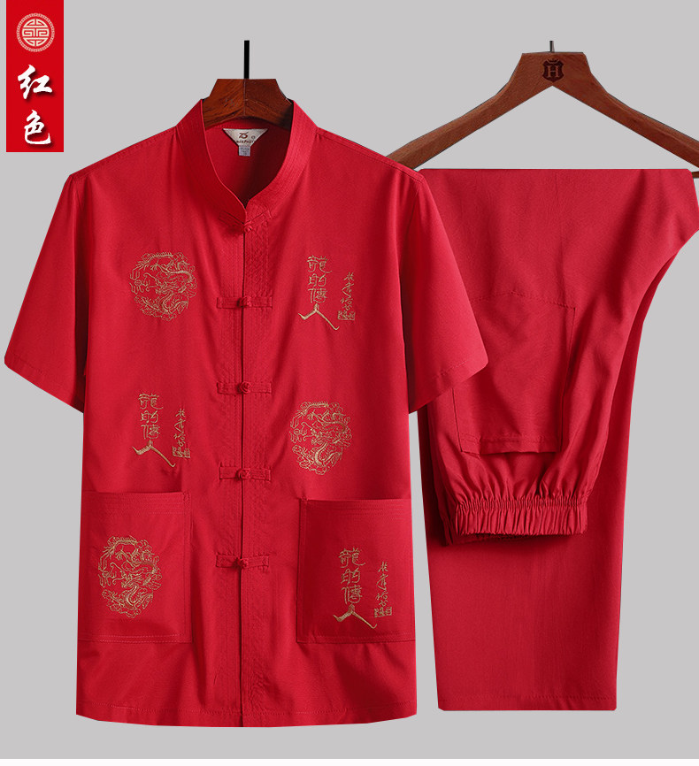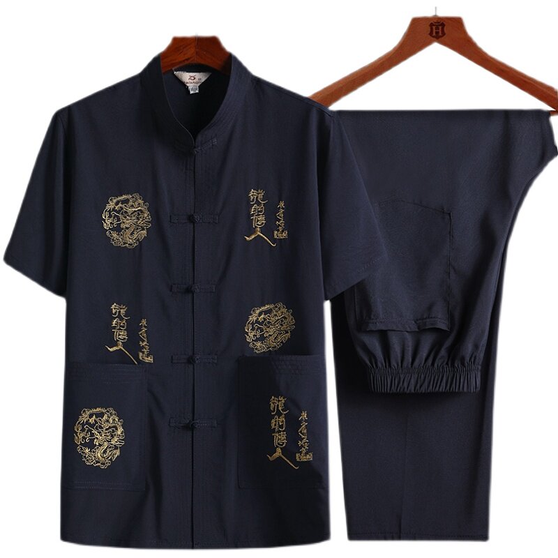 Летний комплект для пожилых людей, рубашка, ханьфу для отдыха, для среднего возраста, короткий рукав, с вышивкой, китайский стиль