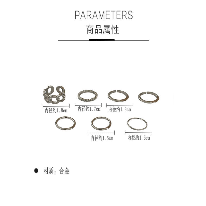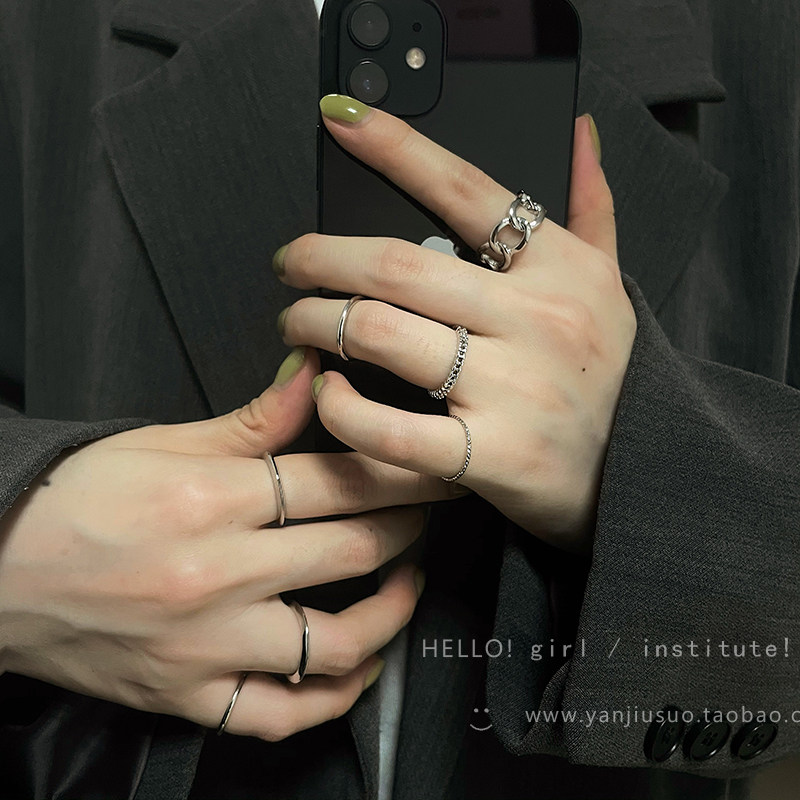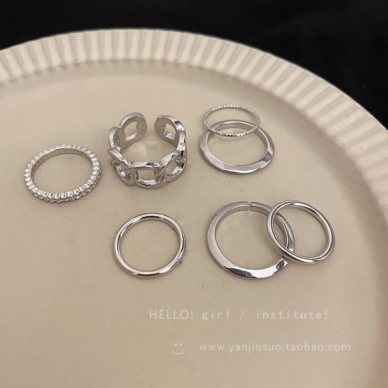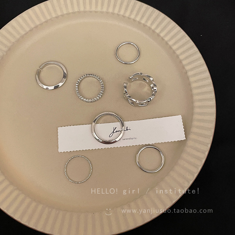 Tide, серебряная цепь, комплект, небольшое дизайнерское модное кольцо, 7 шт, на указательный палец