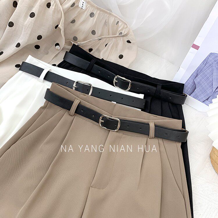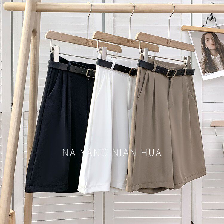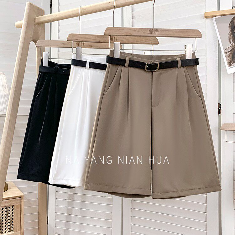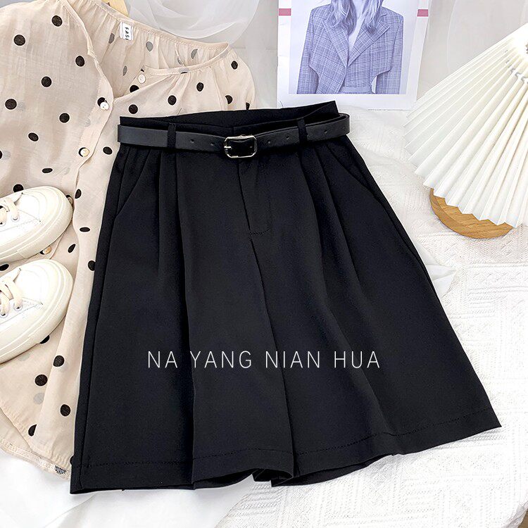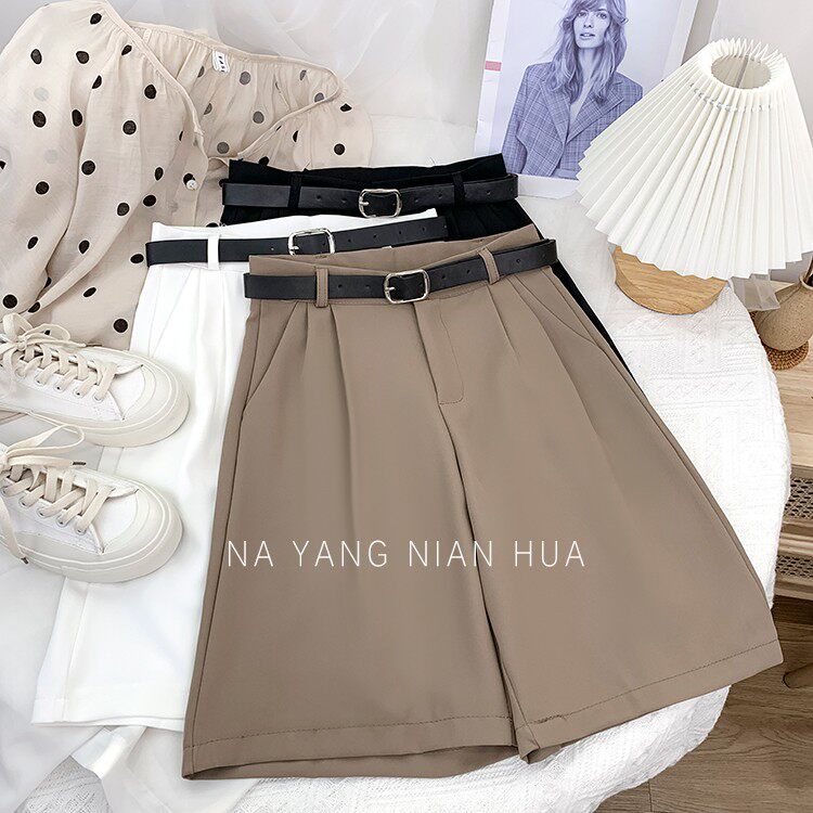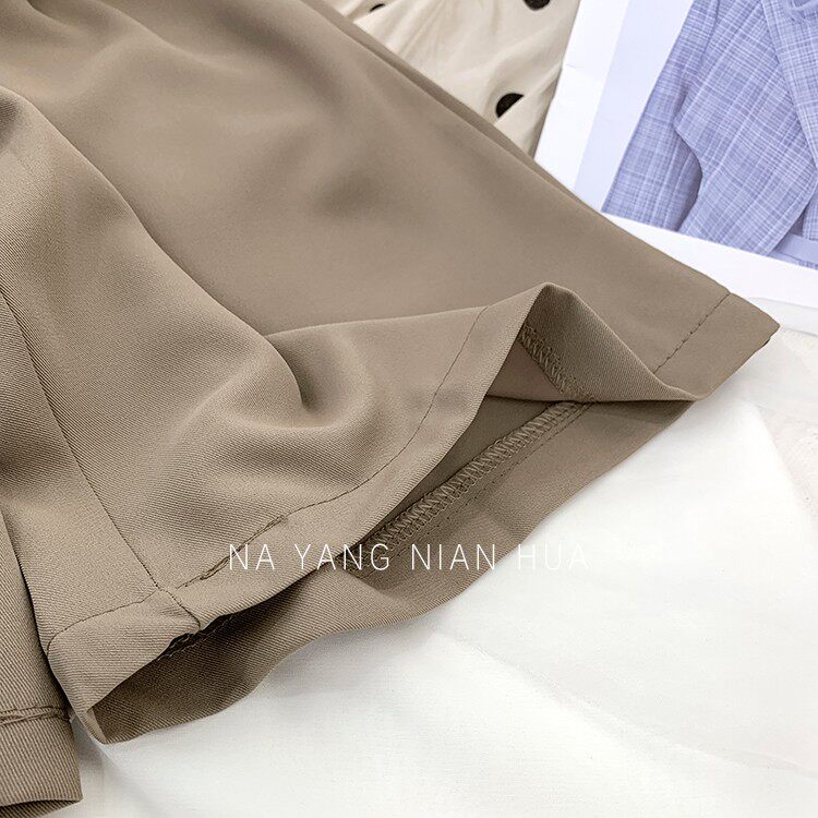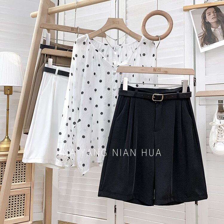 Шелковый костюм, шорты, шифоновые японские штаны, высокая талия, свободный прямой крой